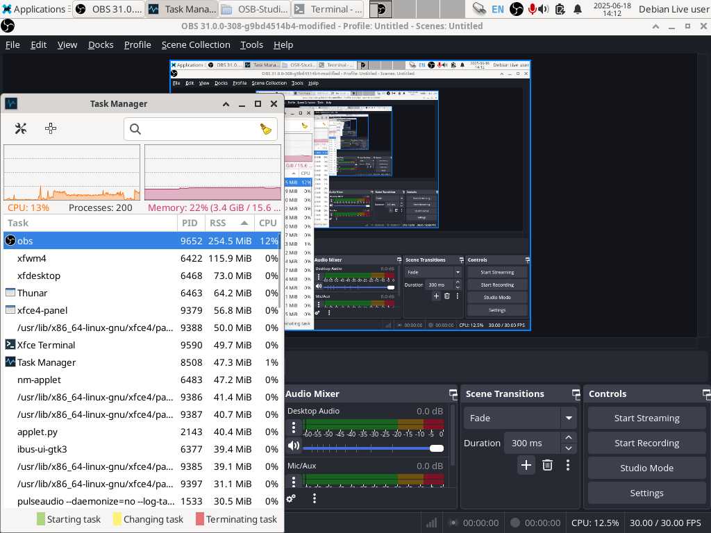 Мне пришлось компилировать программу из исходного кода. Это было то ещё приключение. Мало того, инструкции с серьёзными ошибками, так ещё приходилось собирать и обновлять прочие зависимости, необходимые для компиляции OBS Studio.