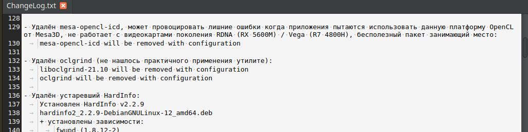 Был удалён пакет mesa-opencl-icd, ибо OpenCL API всё равно нормально не работало с видеокартами AMD Radeon. Только проблемы доставляло и не имело смысла при наличии полноценных видеокарт NVIDIA. Да, в отличие от Radeon, на видеокартах GeForce нет проблем с OpenCL и без костылей от Mesa3D, ибо NVIDIA поддерживает пользователей полноценными драйверами, в отличие от AMD.