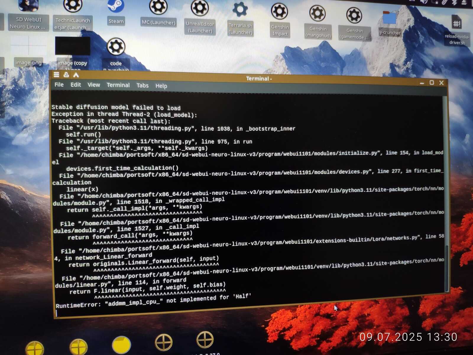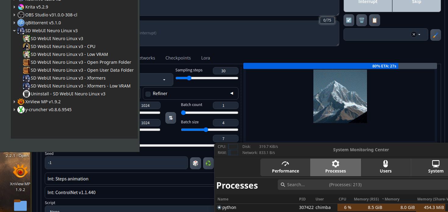 Только кривые драйверы графики Nouveau+Mesa3D дают о себе знать странным поведением приложений, использующих OpenGL. Ещё Stable Diffusion WebUI Neuro Linux V3 не запустился, ибо линуксоидные драйверы видеокарт не способны предоставить весь необходимый функционал.