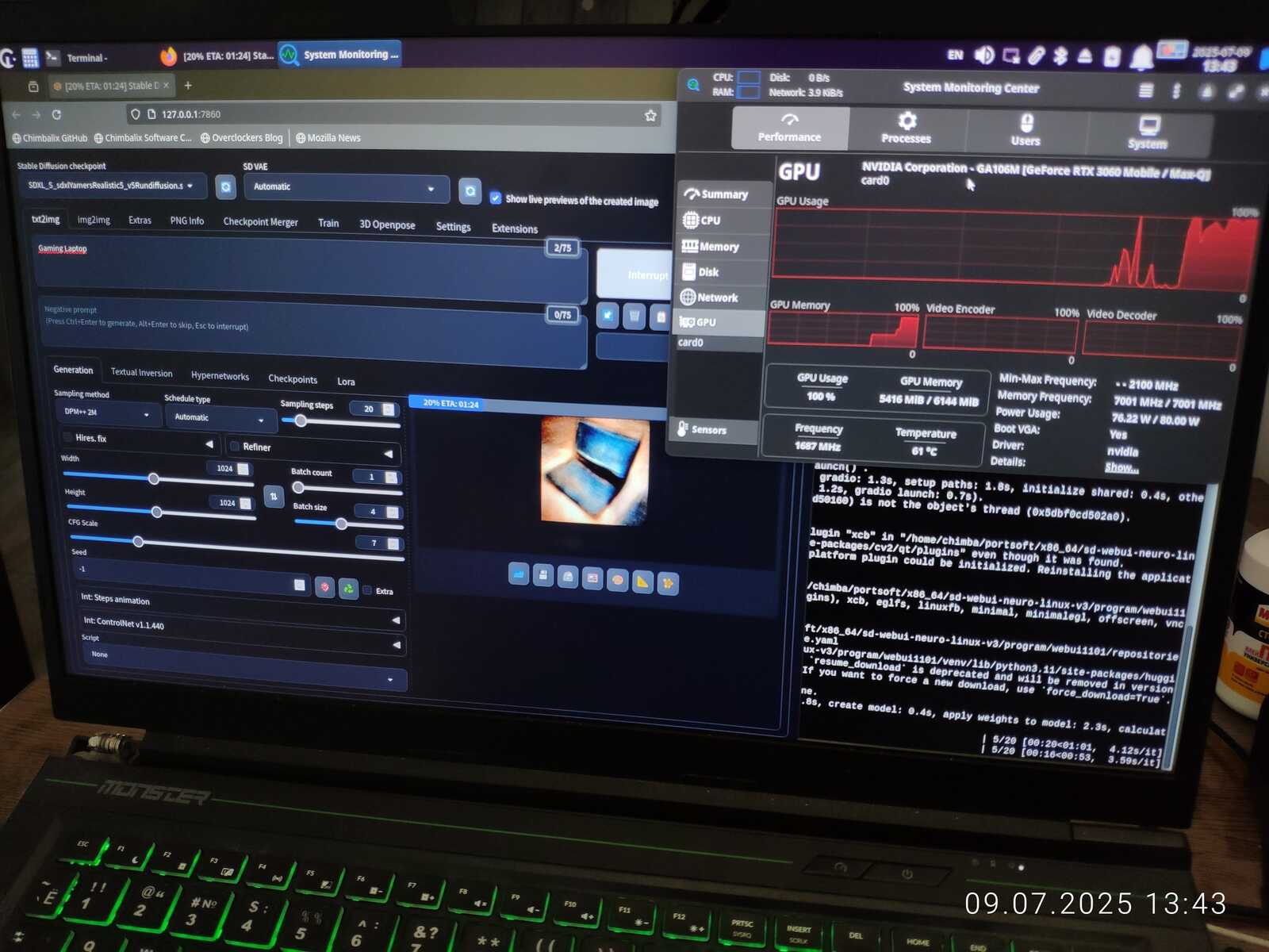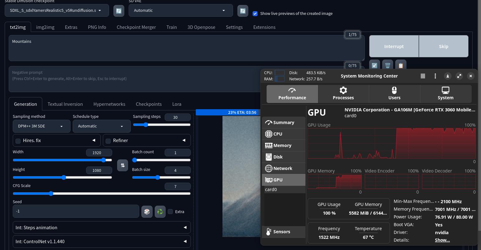 Хотя моей RTX 3060 на 6 Гб и хватает для генерации изображений с помощью SD WebUI Neuro Linux V3 в разрешении 1920x1080, используя SDXL модели, причём на 4 изображения одновременно. Но без Google PerfTools приходилось бы периодически перезапускать нейронную сеть, чтобы очистить оперативную память от мусора.