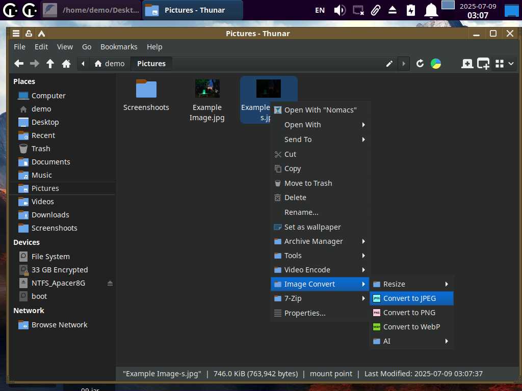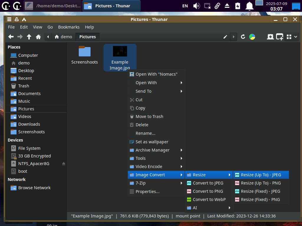 Добавлены функции конвертации PDF и DjVu документов в изображения. Добавлена функция конвертирования видео и анимированных изображений в набор обычных изображений. Добавлены функции преобразования аудио файлов в OGG и MP3. Так же добавлены новые функции создания ярлыков на рабочем столе для JAR (Java) и EXE файлов (WINE).