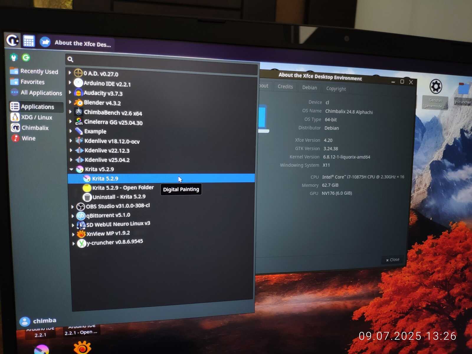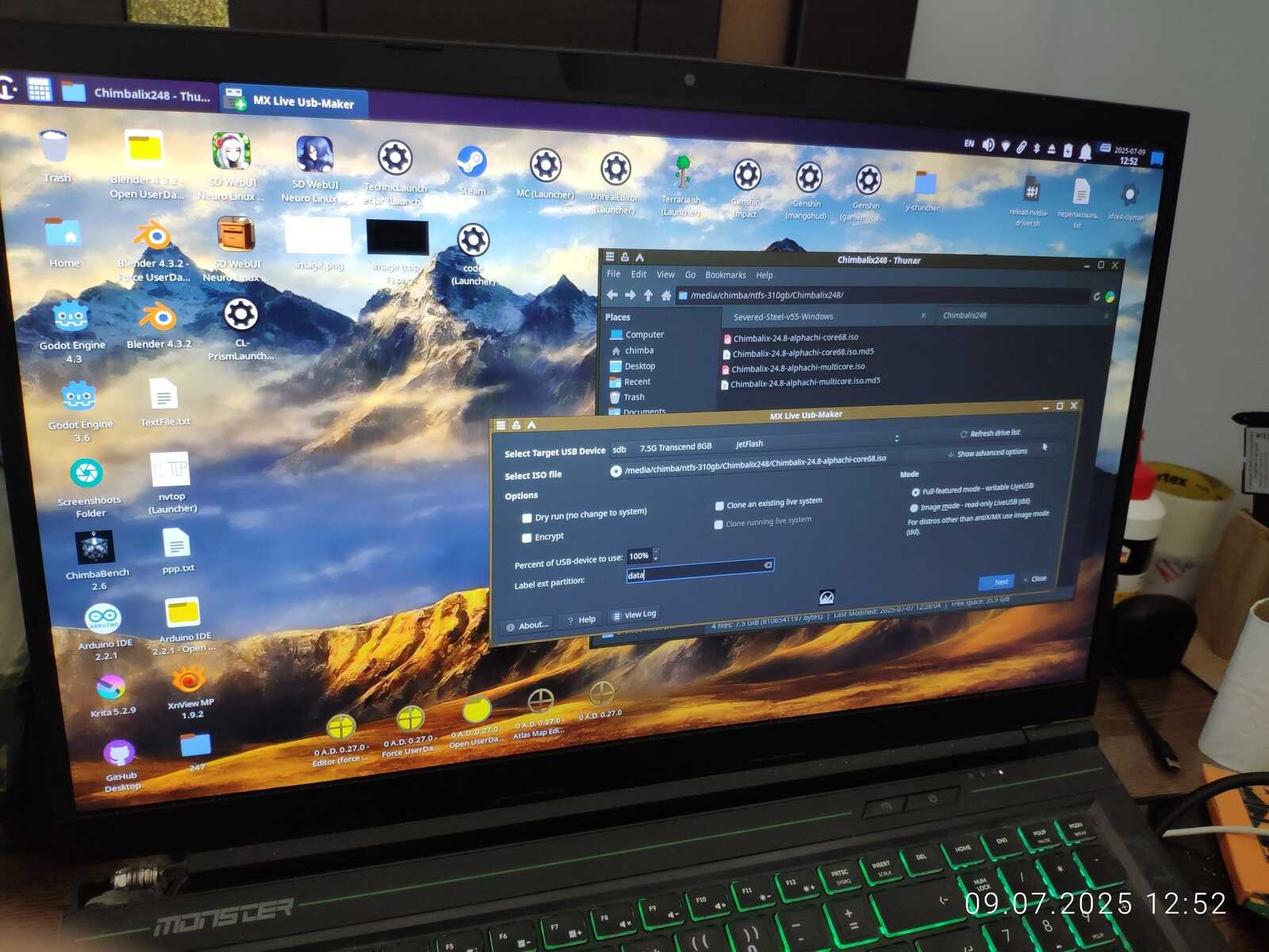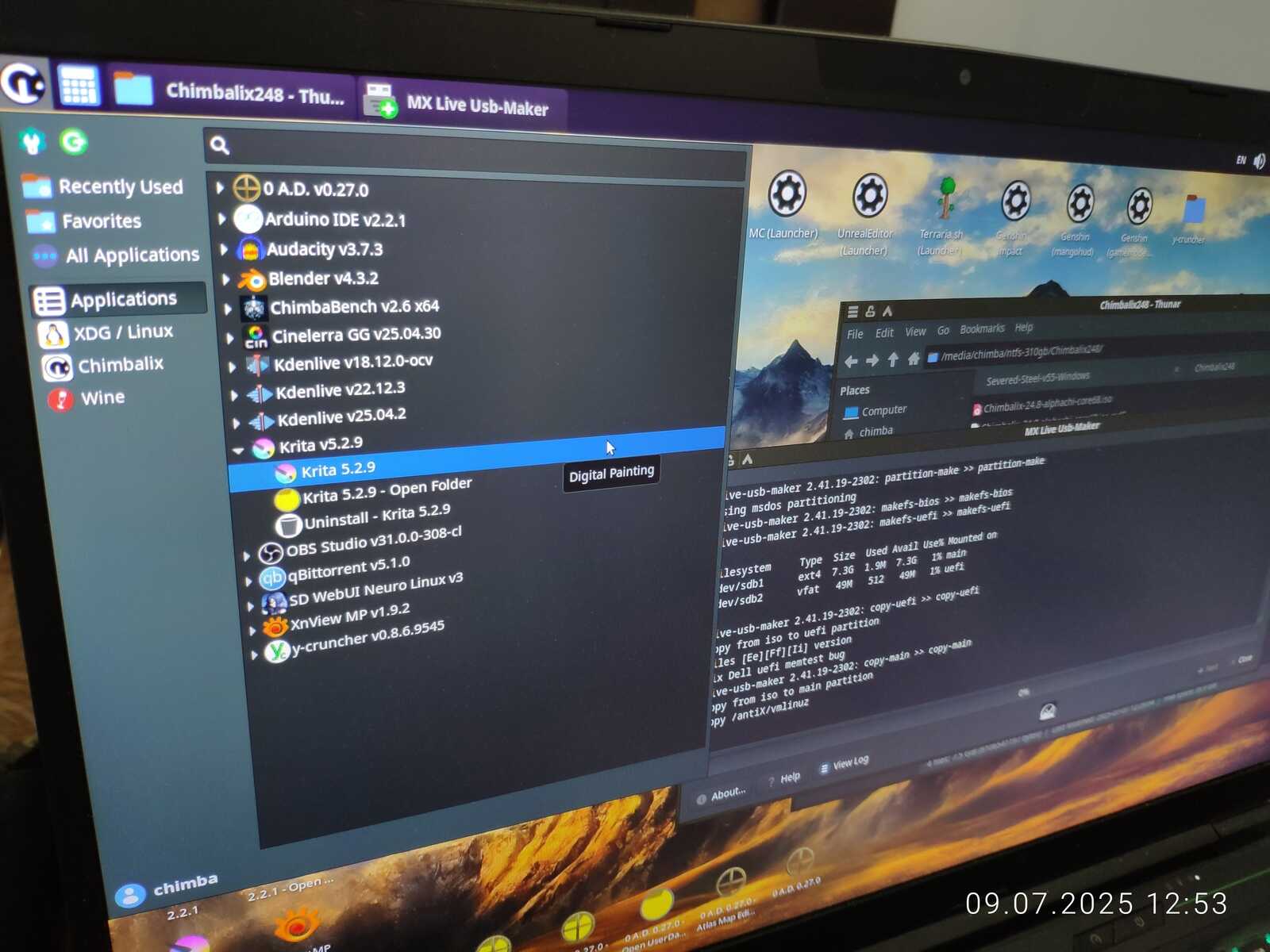 Так как произошло обновление системных компонентов вроде рабочего окружения, есть смысл обновить уже установленный Chimbalix 24.7 на новый. Записываю образ на флешку, попутно смотрю на установленные приложения и думаю, что не хотелось бы всё заново устанавливать и настраивать...