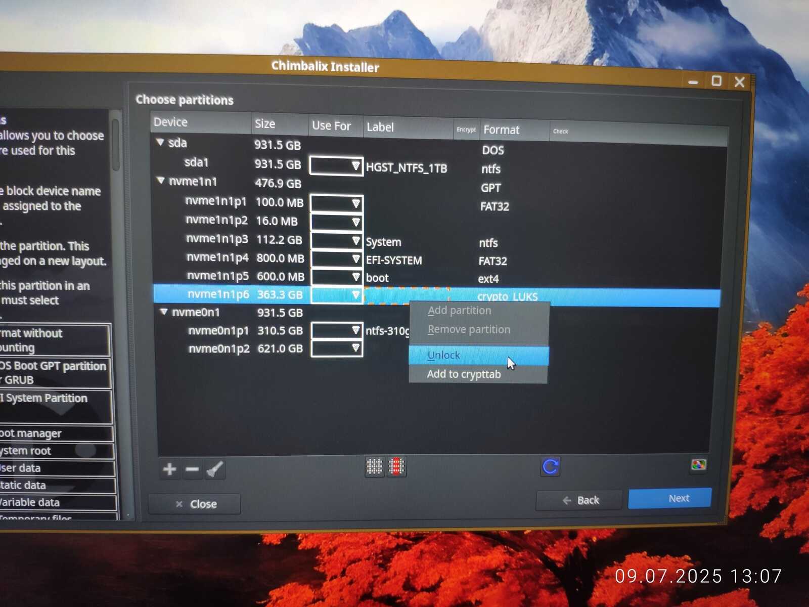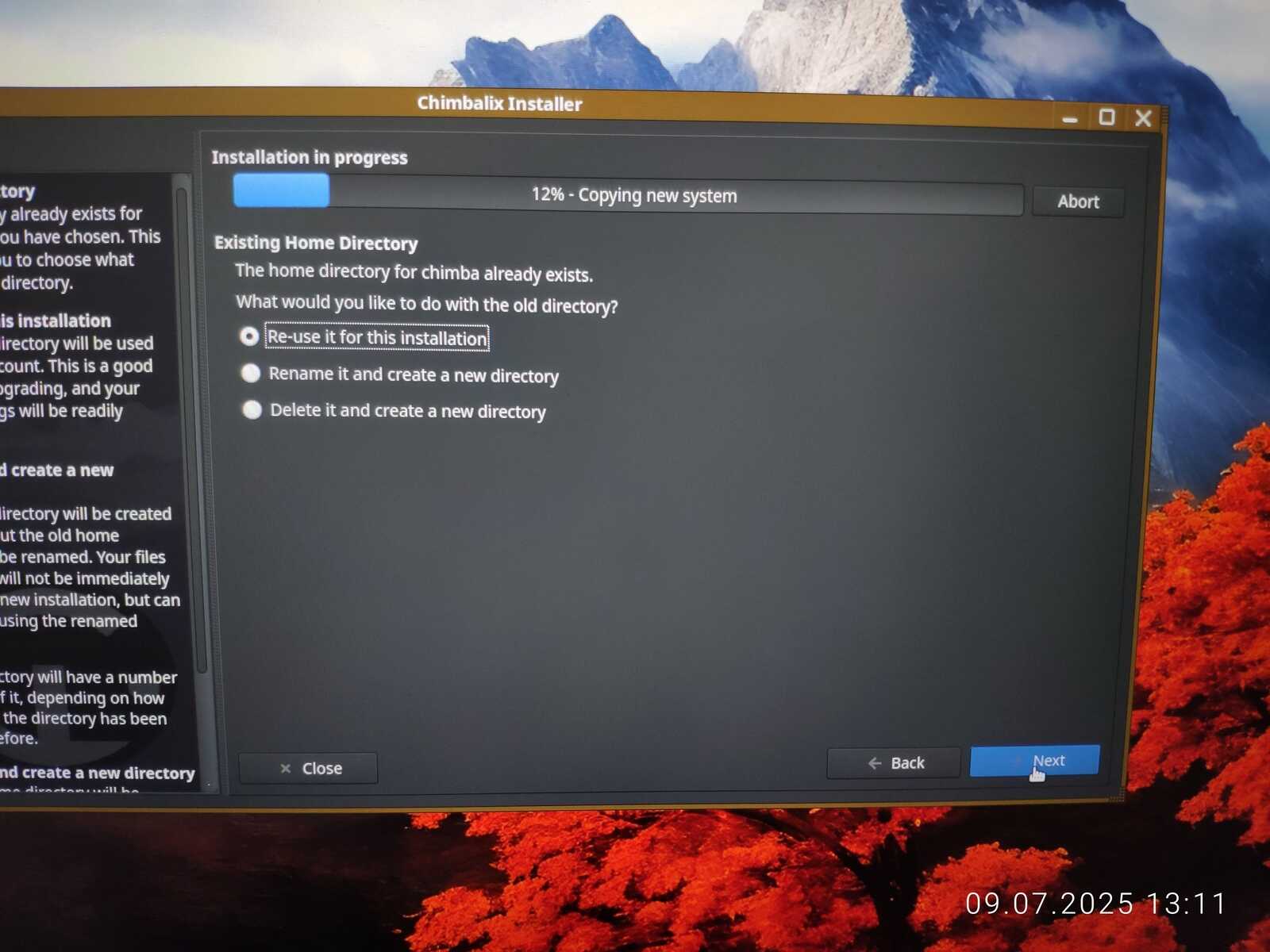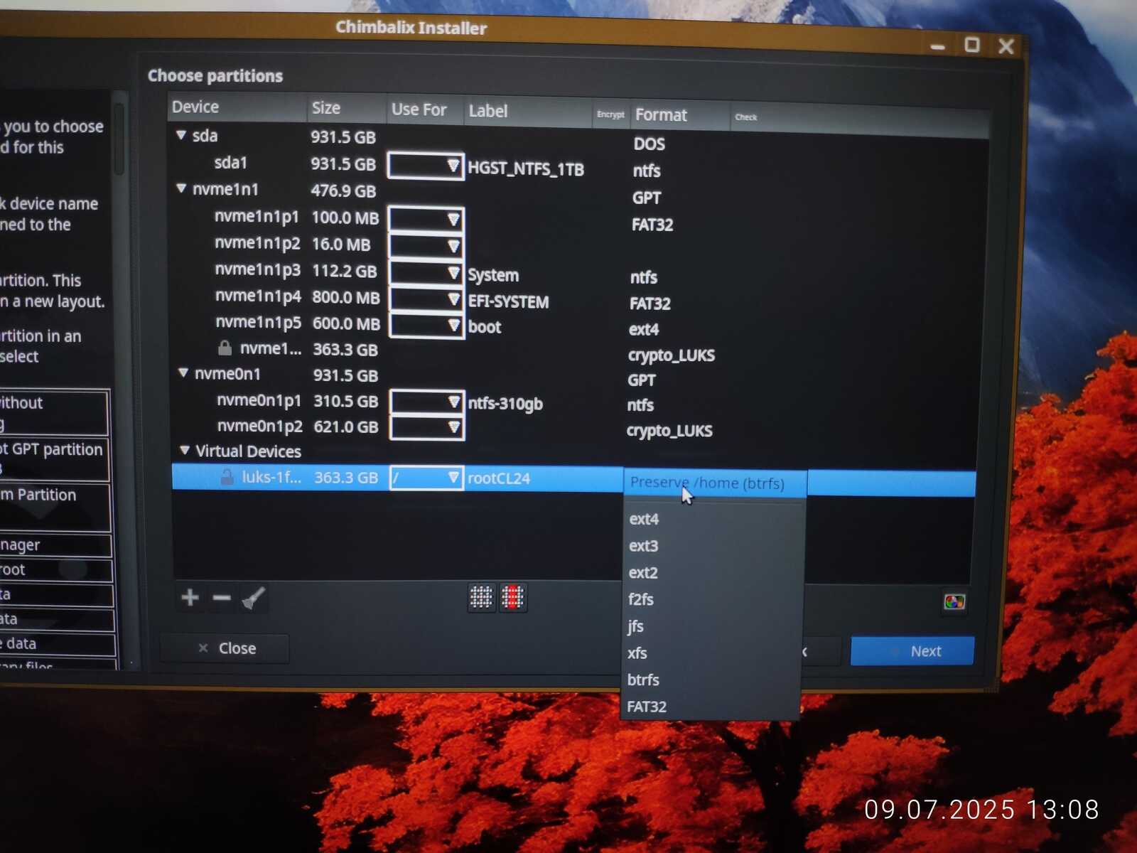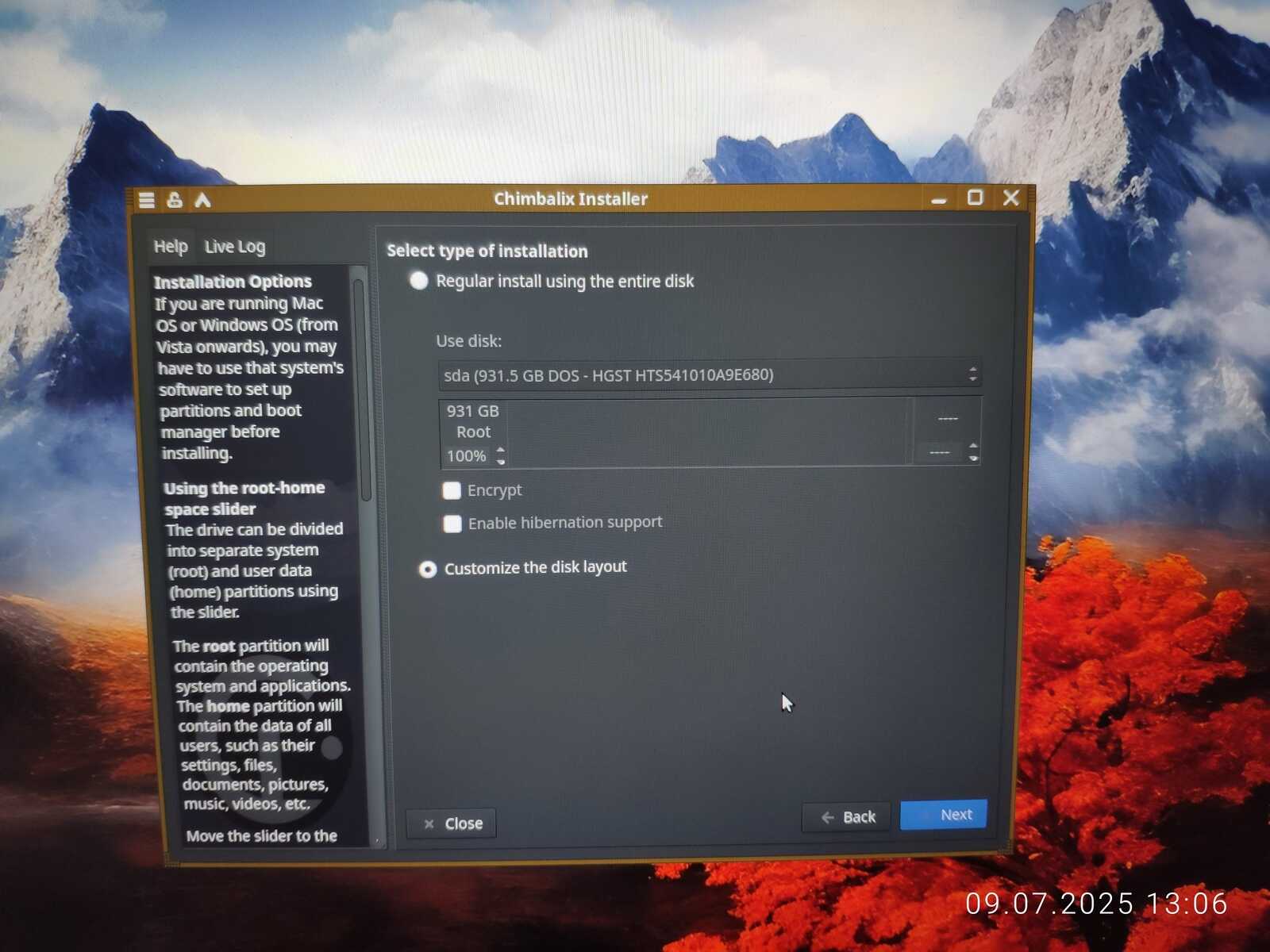 Так как я не хочу терять все установленные приложения в формате Installer-SH, то размечаю диск с сохранением файловой системы и домашнего каталога.