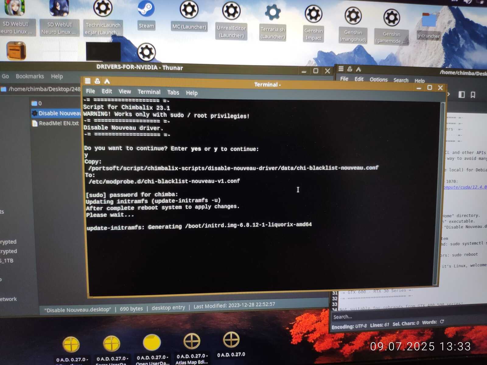 Так как Интернет у меня ещё не подключен, использую уже имеющиеся установочные пакеты драйверов NVIDIA. Открываю инструкцию, блокирую драйвер Nouveau, чтобы не мешал.