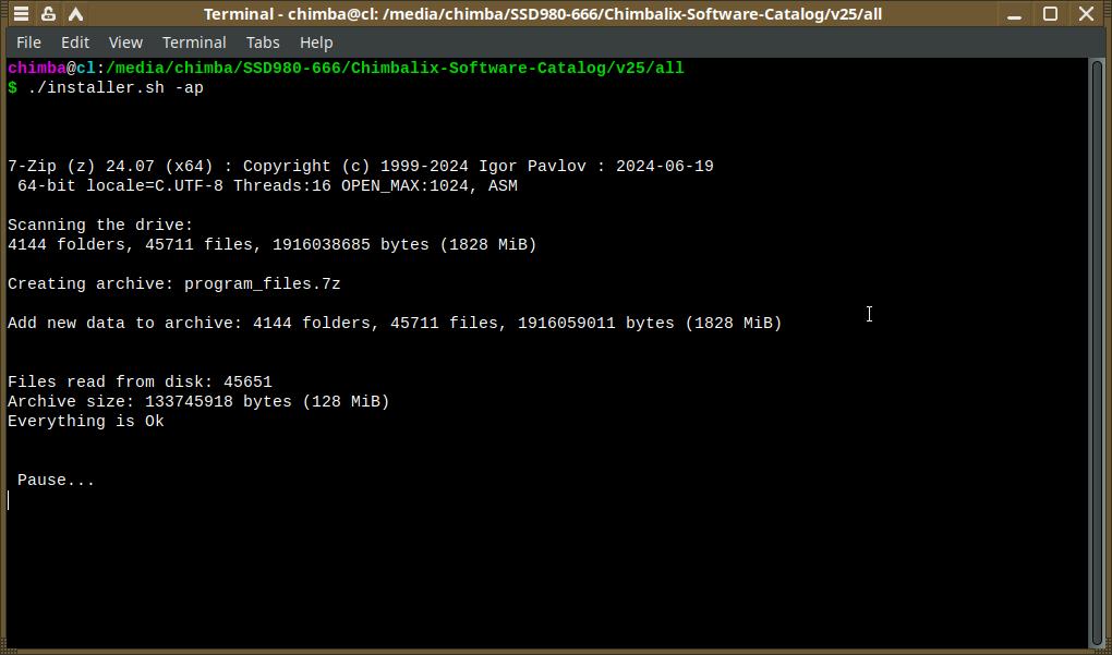 Благодаря архиватору 7-Zip и оптимизированным параметрам сжатия удалось всё разом ужать до впечатляющих 128 МБ! Напомню, в исходном формате AppImage это всё весит порядка 947 МБ.