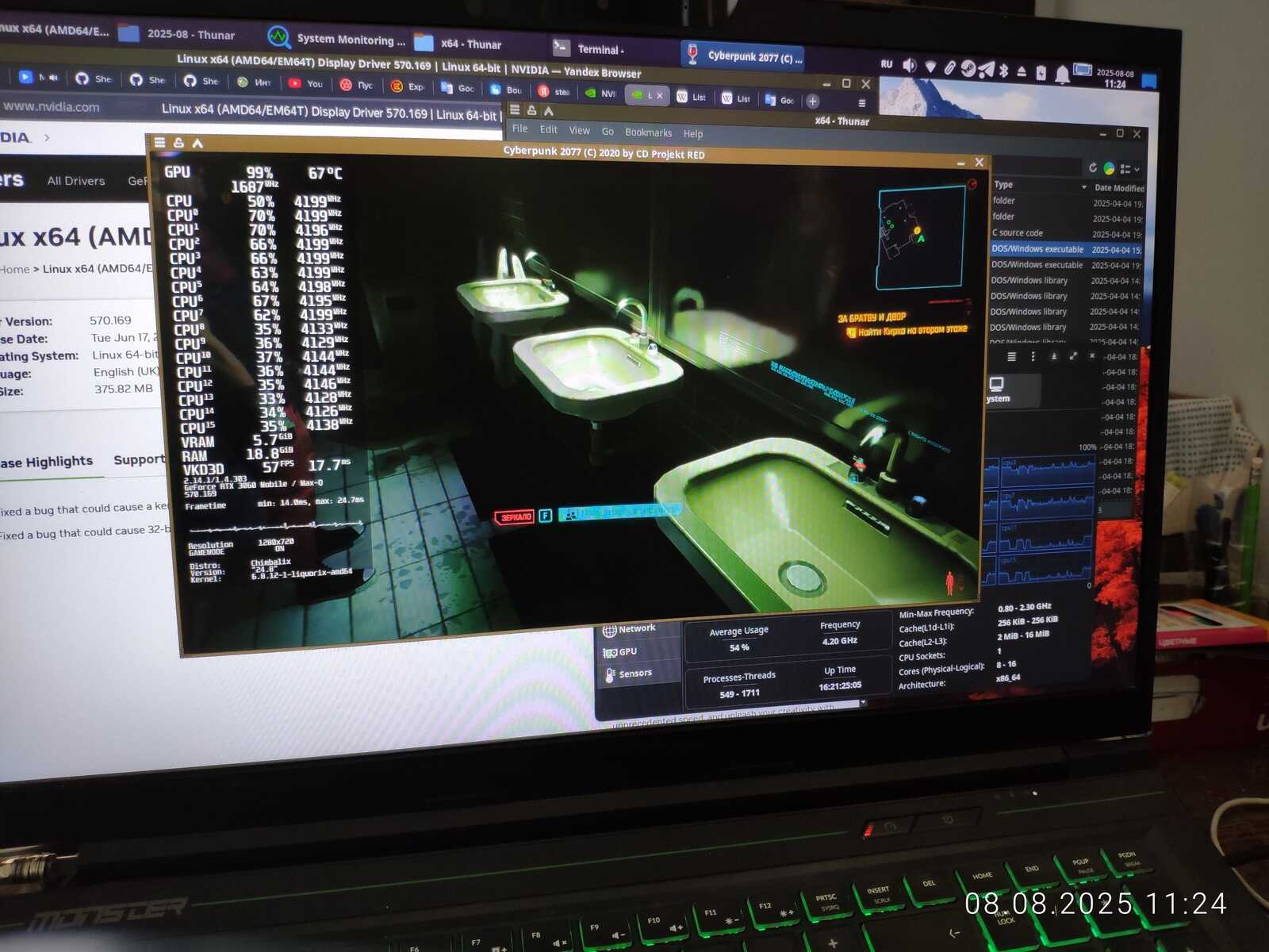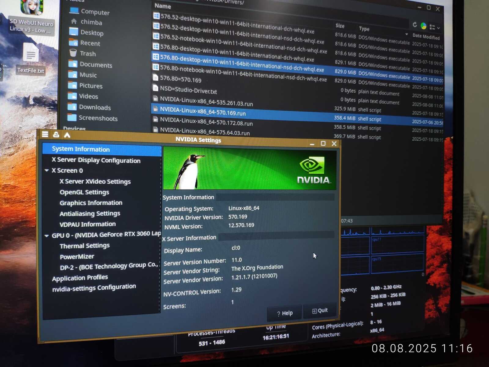 Тесты буду проводить на одинаковых драйверах, выпущенных в одно время. Для Windows это NVIDIA 576.80, а для Linux это 570.169. Говорят, что у NVIDIA очень много проблем с драйверами в последнее время с этими версиями. Вот и посмотрим, столкнусь с проблемами или в очередной раз всё будет нормально.
