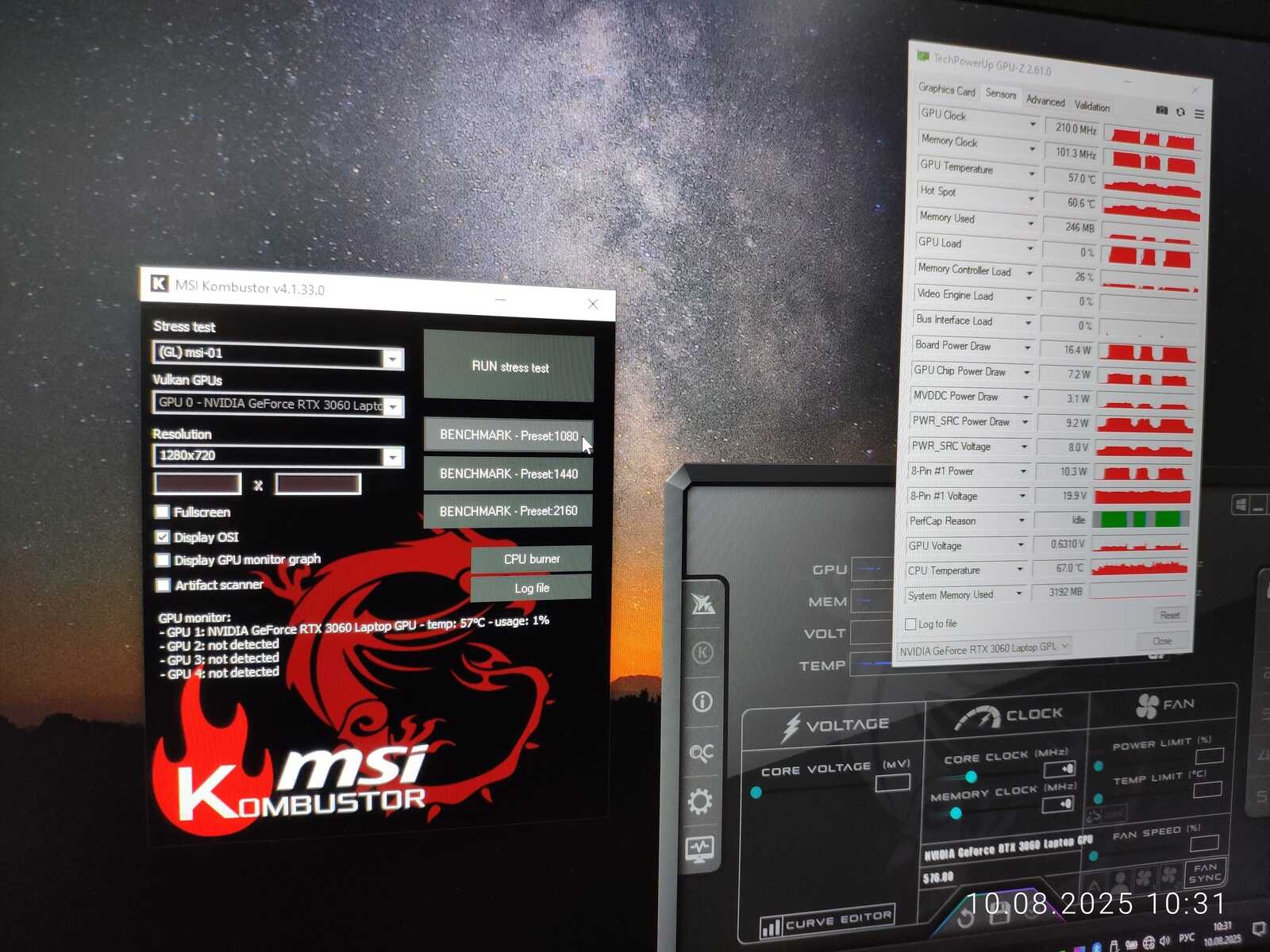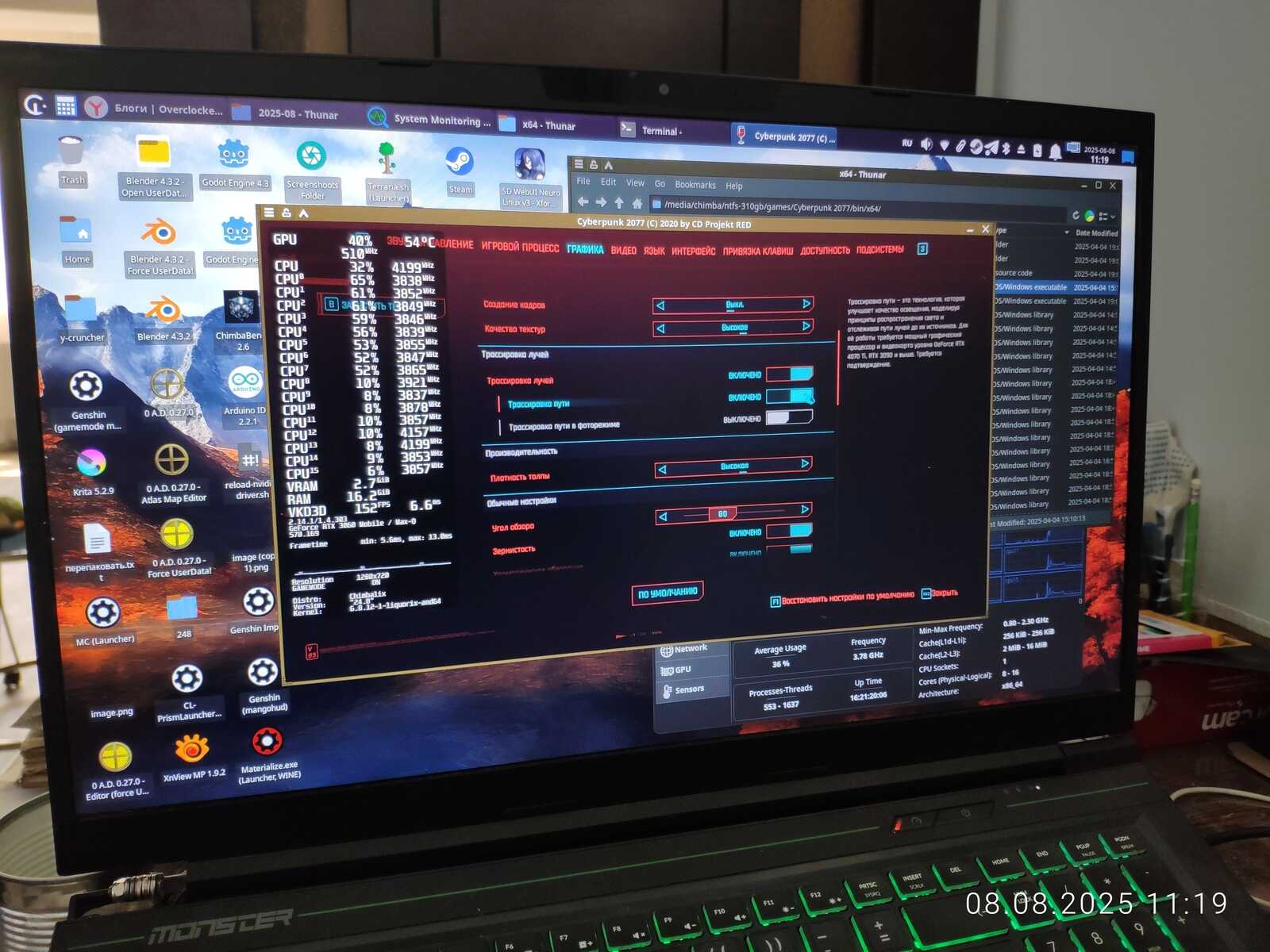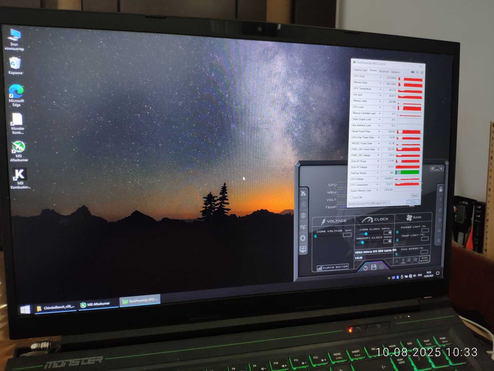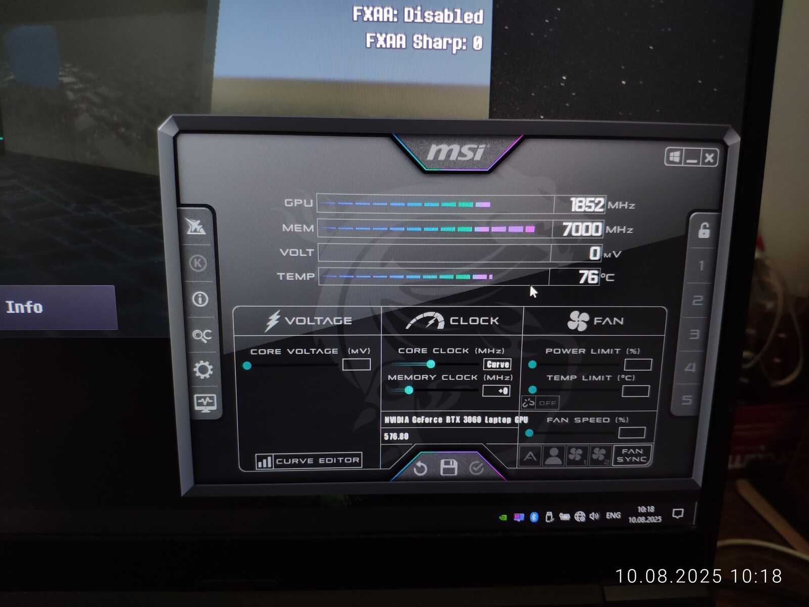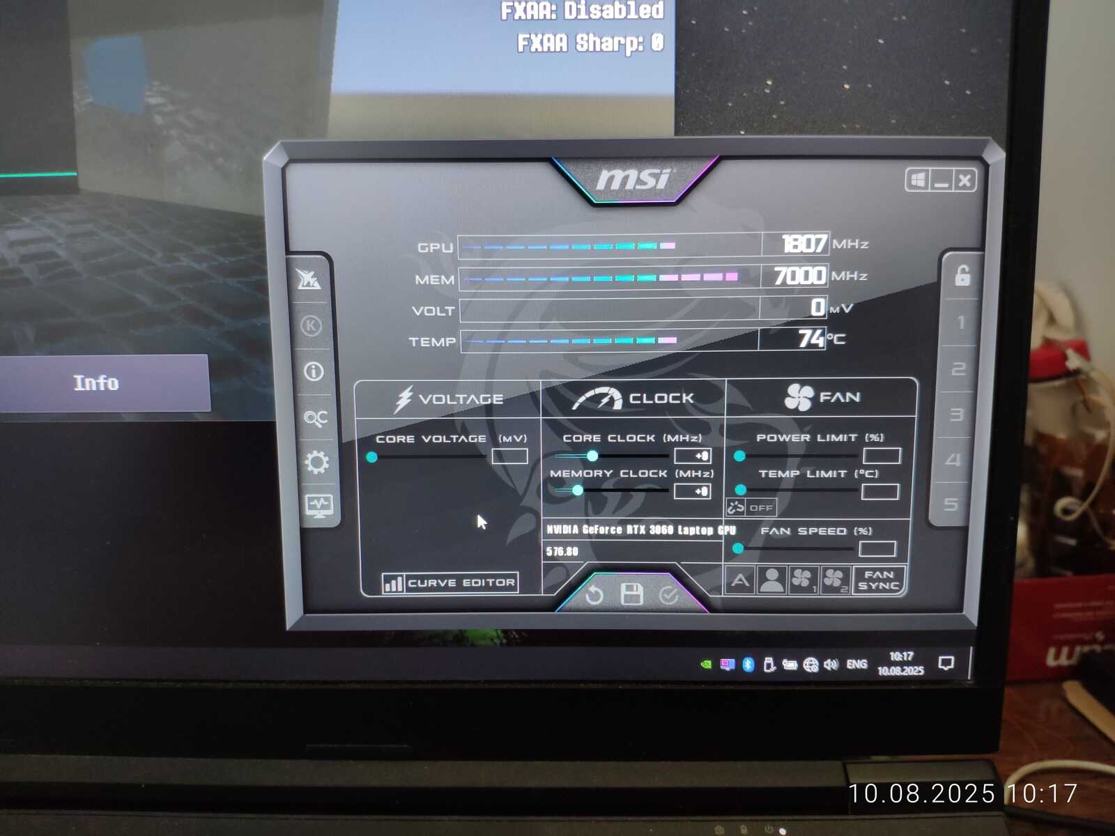 Тестовый ноутбук состоит из процессора Intel Core i7-10875H и видеокарты NVIDIA GeForce RTX 3060 Mobile на 6 GB. Так же на борту 64 GB оперативной памяти и два NVMe SSD. Для разгона буду использовать MSI Afterburner в среде Windows и контрольную панель NVIDIA в Linux.