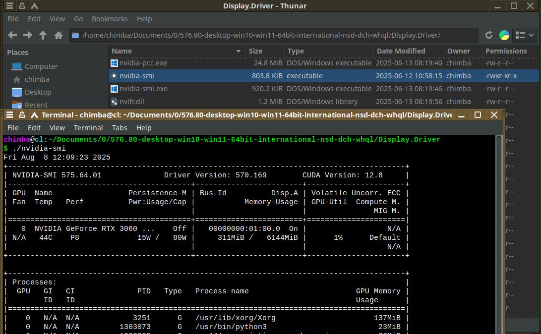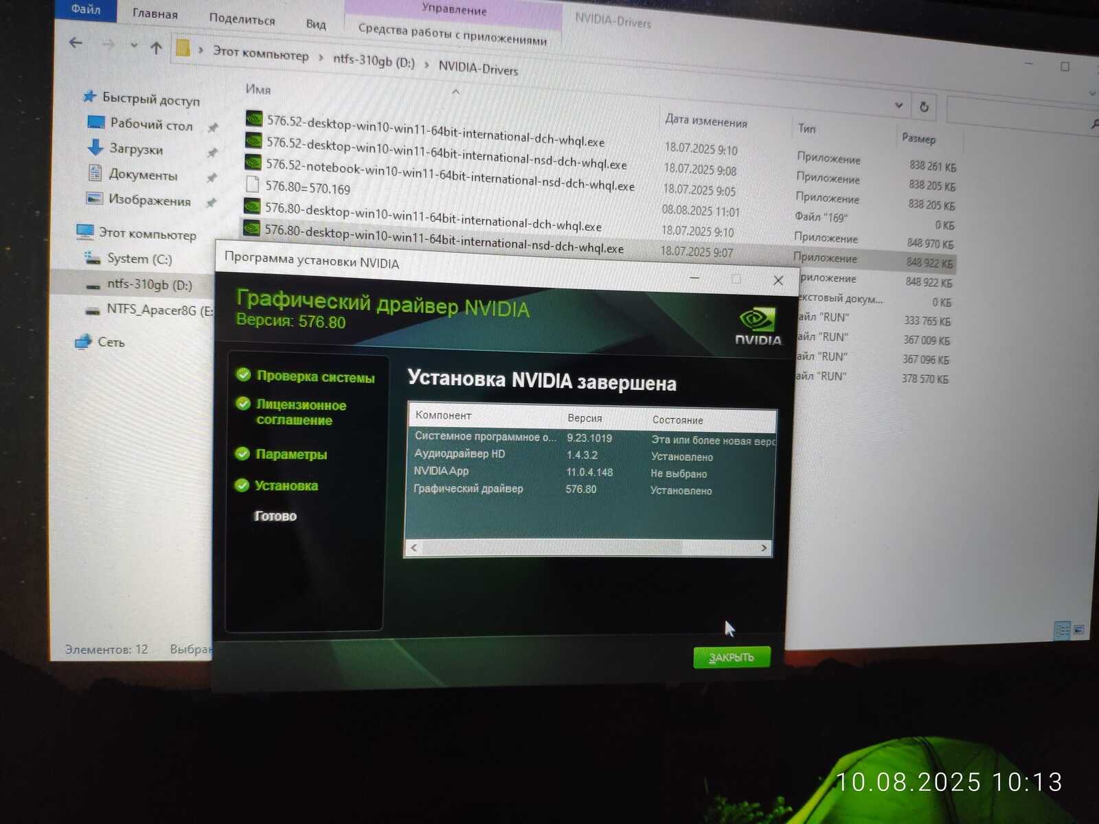 Обновляю драйвер до версии 576.80, чтобы соответствовал установленному в «дряхлом пингвине». Даже перезагружать систему не пришлось — настолько хорошо продумана Windows в плане драйверов.