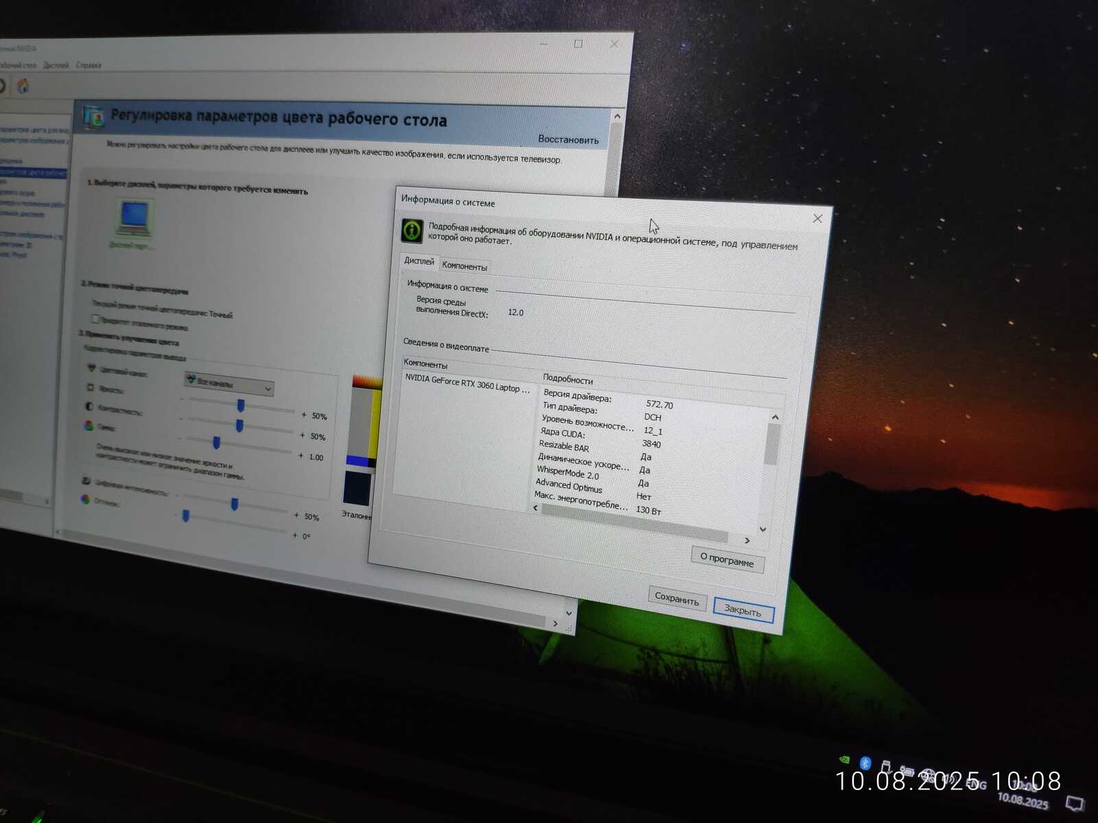 Ну что. Пришло время перезагружать ноутбук. Загружаю Windows 10 и вижу, что установлен старый драйвер 572.70.