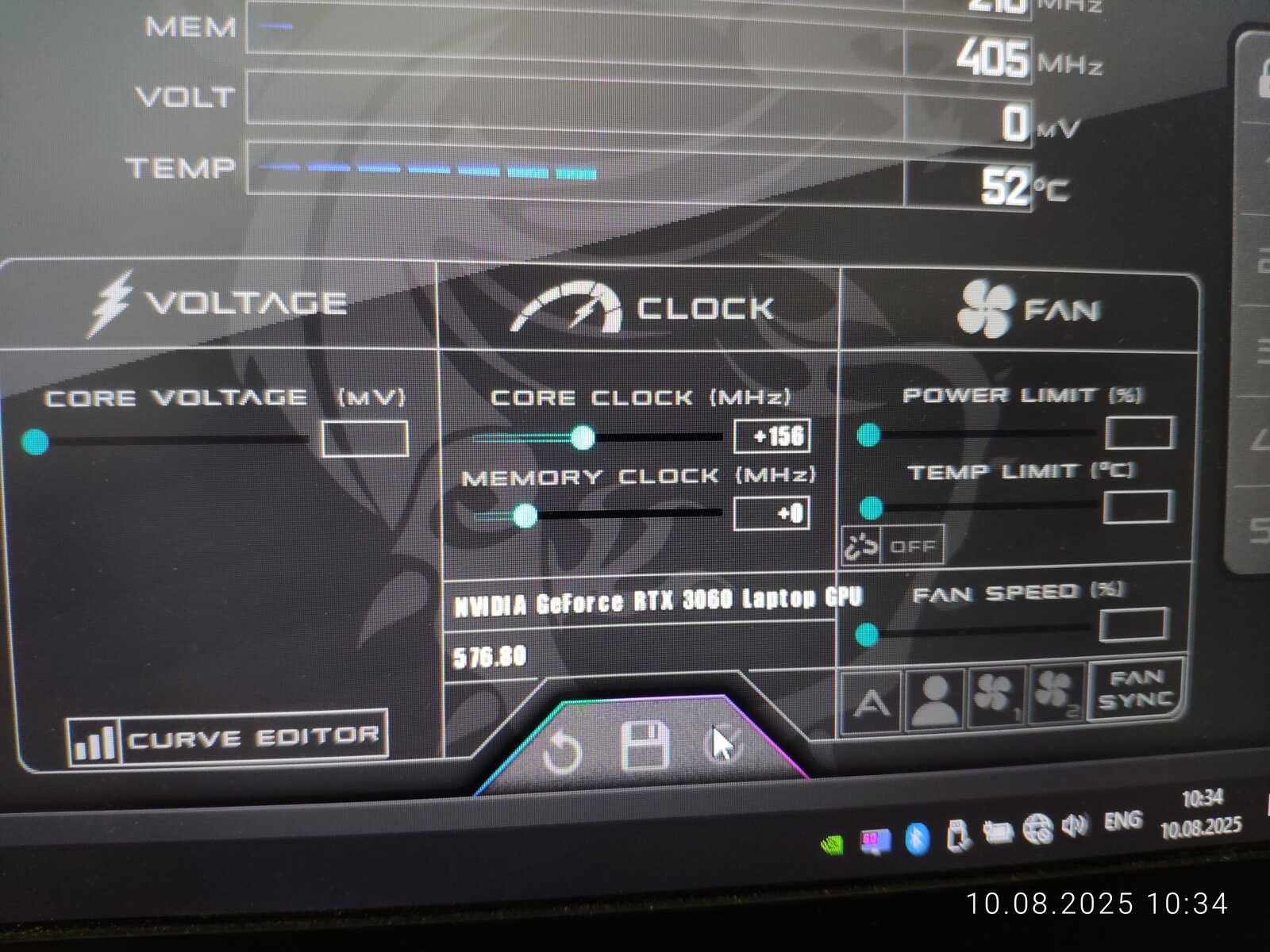 Использовать будем максимальный режим работы ноутбука с лимитом 120 Вт для RTX 3060. Переходим к разгону в утилите MSI Afterburner.