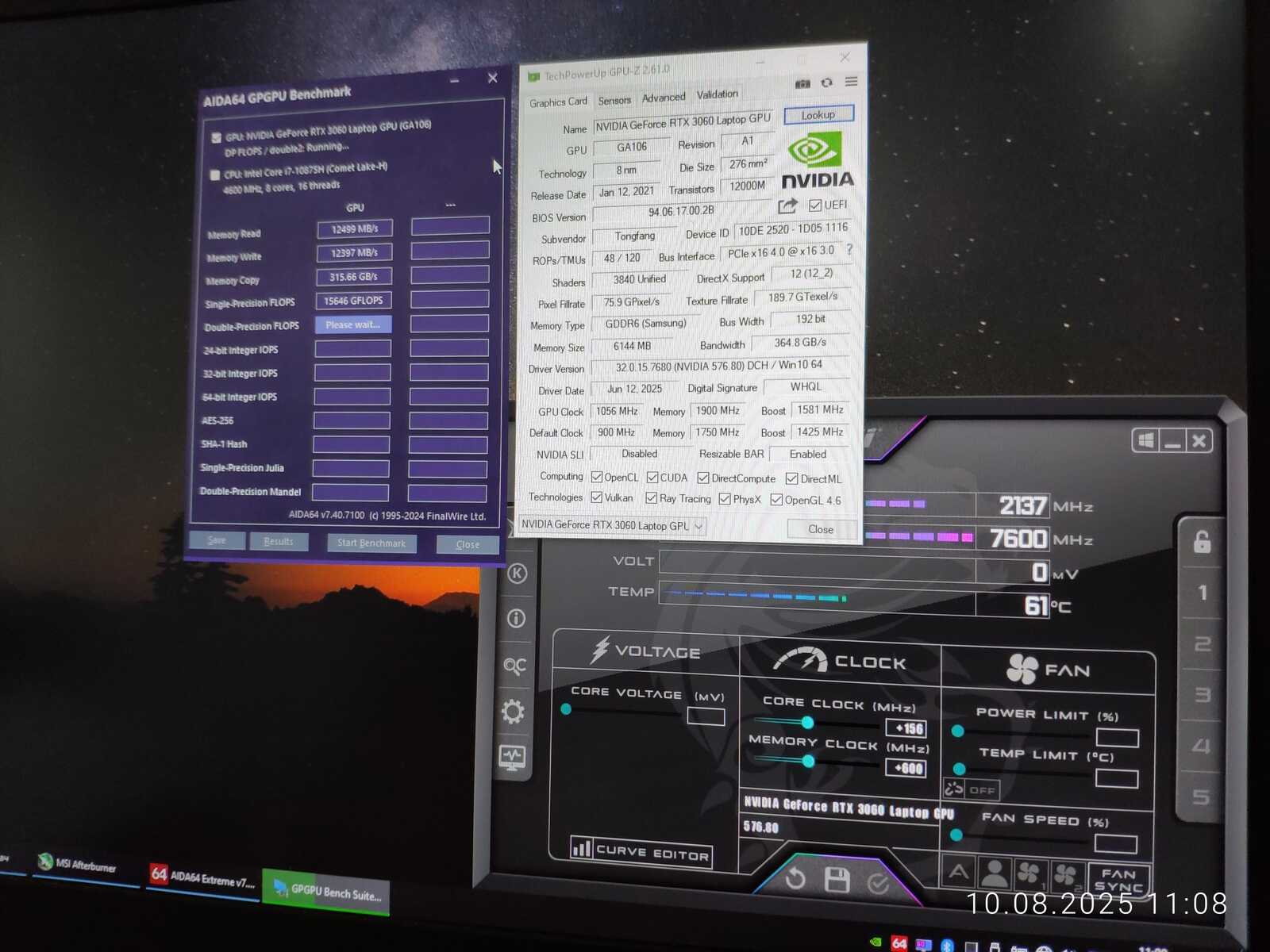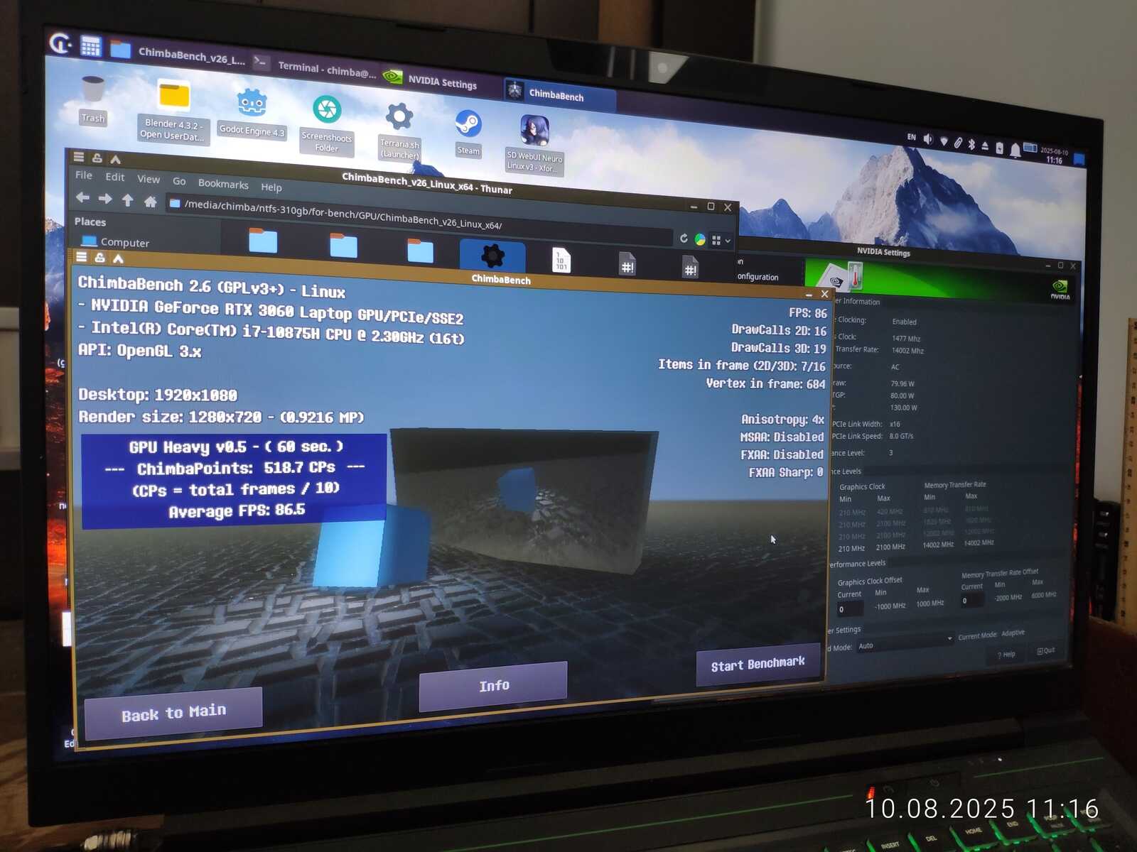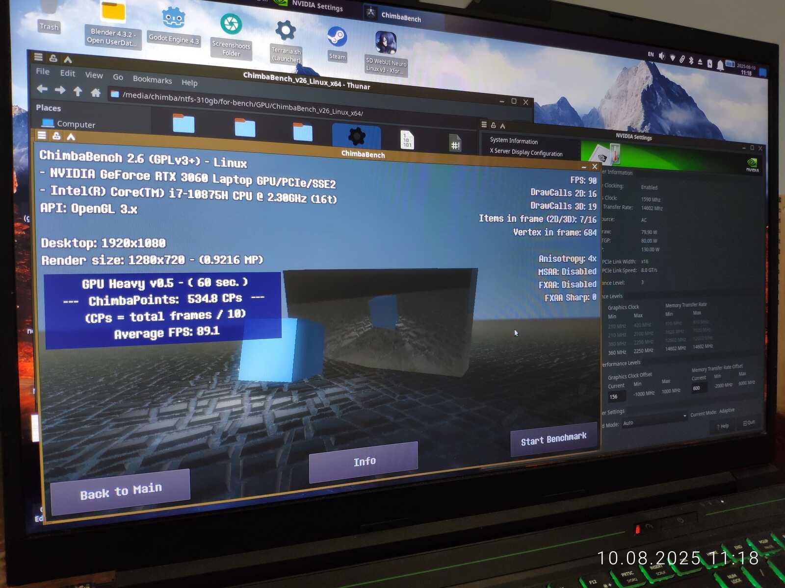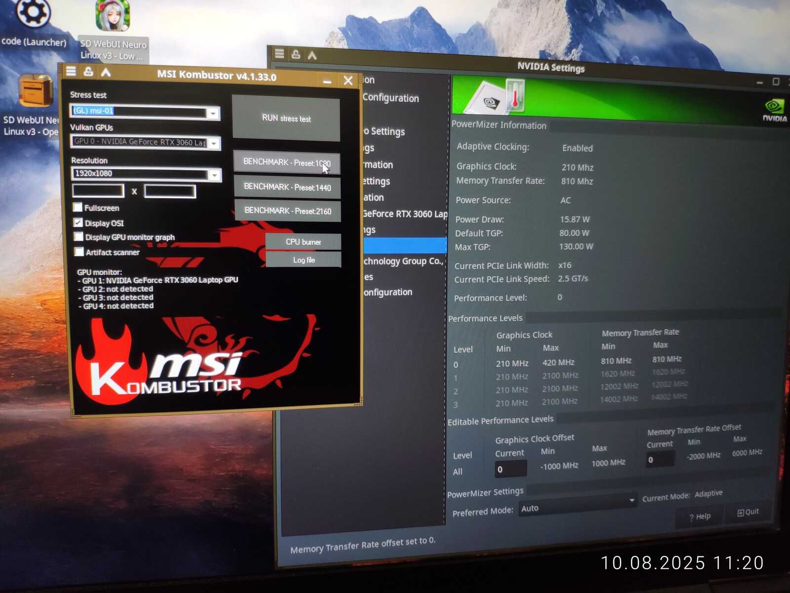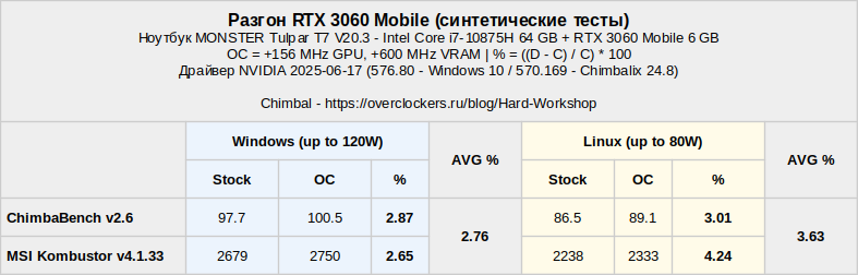 Разгоняю RTX 3060 Mobile и проверяю в синтетических тестах (Windows/Linux)