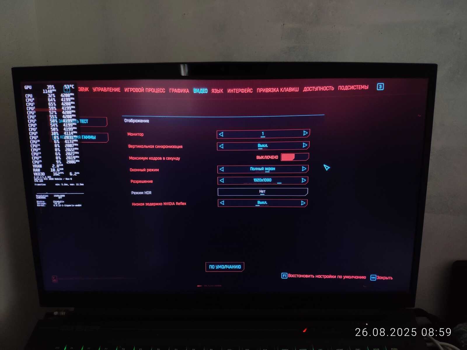 Изначально я планировал собирать результаты обычным образом. Нахожу удобное место в игровом мире и делаю фотографию со всеми показаниями. В том числе захватывая индикатор режима работы ноутбука, который невозможно захватить никаким скриншотом.
