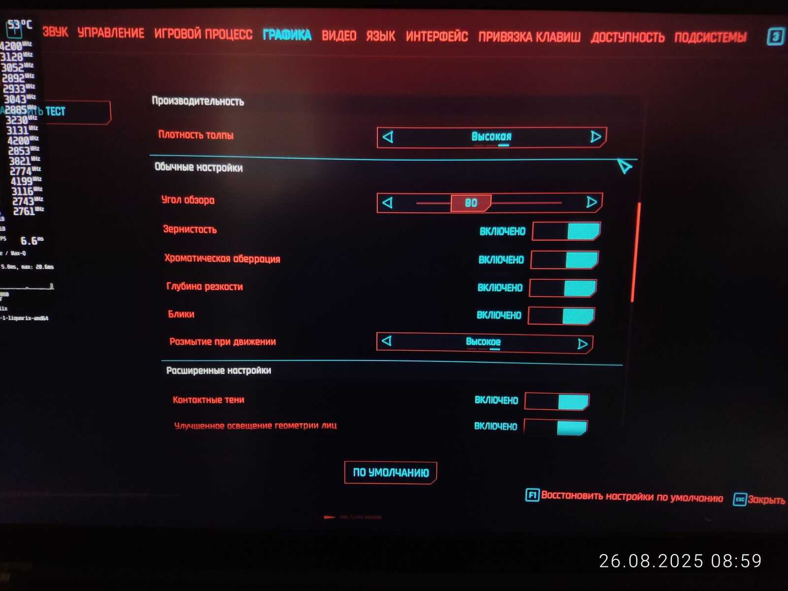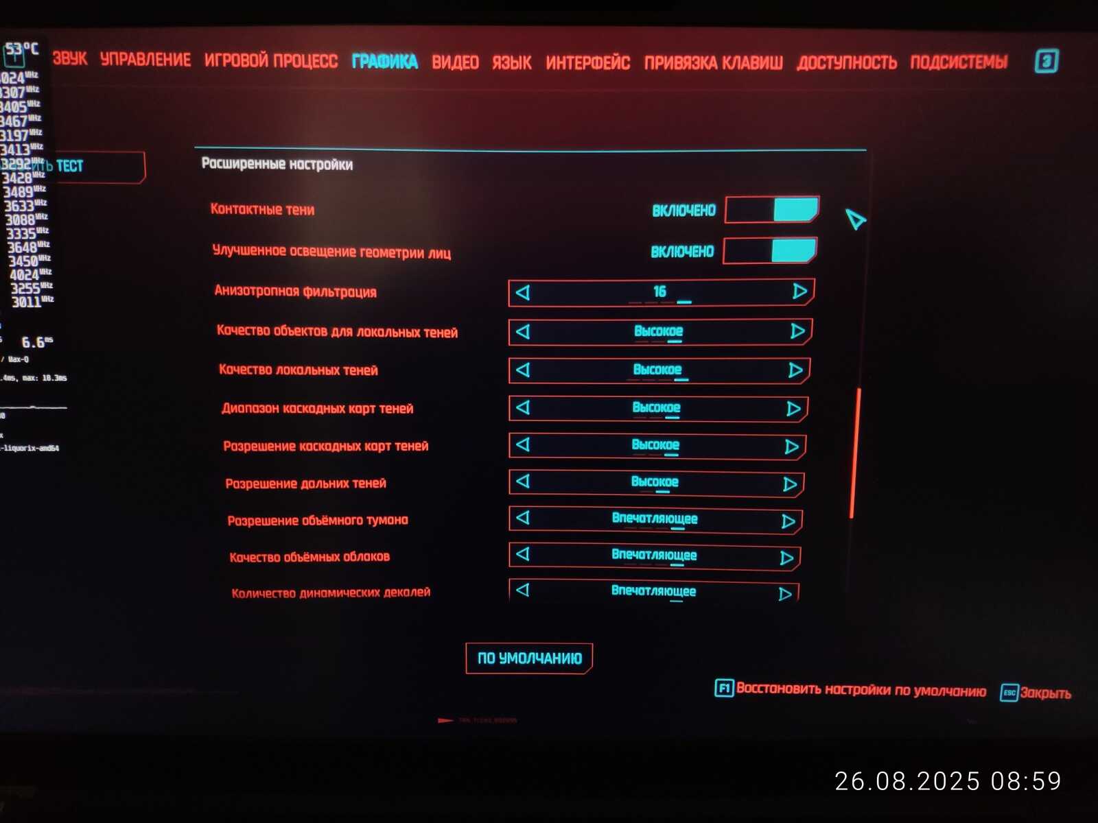 Переходим к графике. Тут всё выставлено на максимум, ибо хочу проверить возможности видеокарты, а не процессора. Данные настройки меняться не будут.