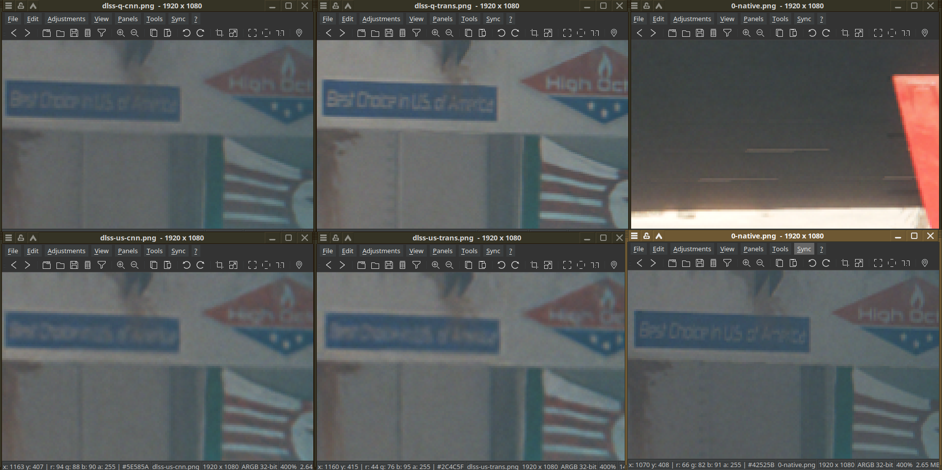 NVIDIA DLSS со старой CNN моделью в режиме качества показывает картинку, сравнимую с Intel XeSS, а с моделью Transformer даже превосходит исходное качество без масштабирования.