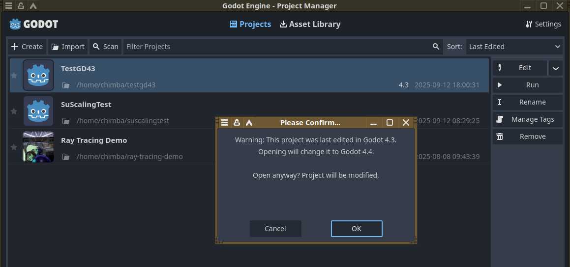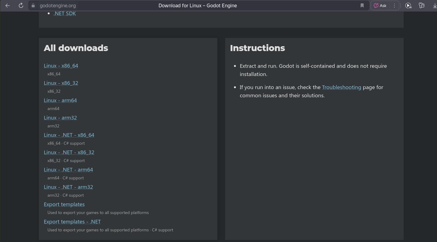 Загрузил проект и всё работает. Даже шаблоны экспорта не нужно руками подкидывать, так как уже встроено всё в выделенный домашний каталог для Godot Engine. Теперь игровой движок не будет создавать помойку в основном домашнем каталоге.
