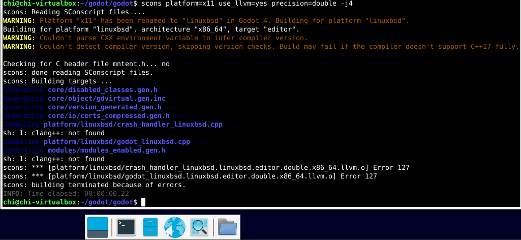 Я пытался найти уже скомпилированные версии Godot Engine с двойной точностью, но, увы, не нашёл. Потому беру бубен в руки и компилирую сам. Такое вот сообщество у линуксоидов. Якобы кто-то да сделает. Ага, конечно... Это действительно много времени занимает, и не факт, что всё получится как надо. А потом некоторые искренне не понимают, почему это Линукс многим и даром не сдался вместе со свободным и открытым софтом.