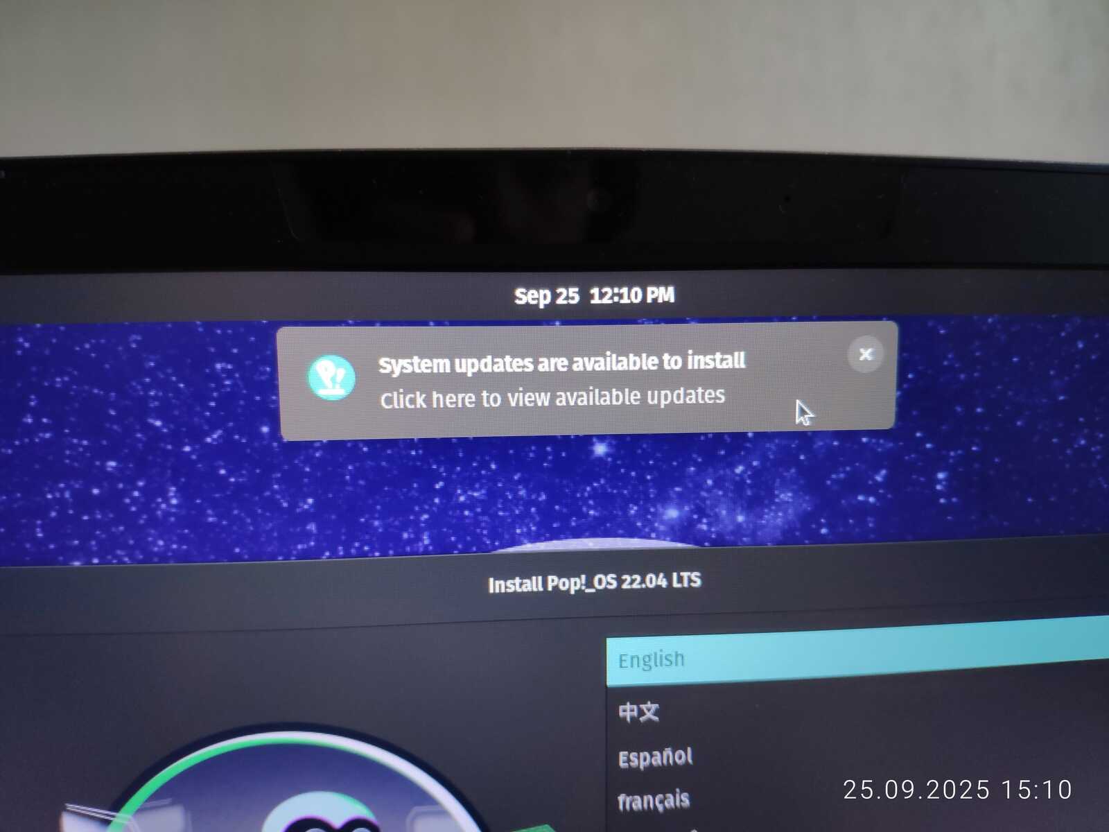 Загрузочное меню Pop!_OS настолько пустое, что рассматривать нечего. После запуска навязчиво предлагают установить обновления. Доступа к интернету при этом нет. Я не пользовался системой и двух минут с момента загрузки, но меня уже начинает раздражать этот Линукс.