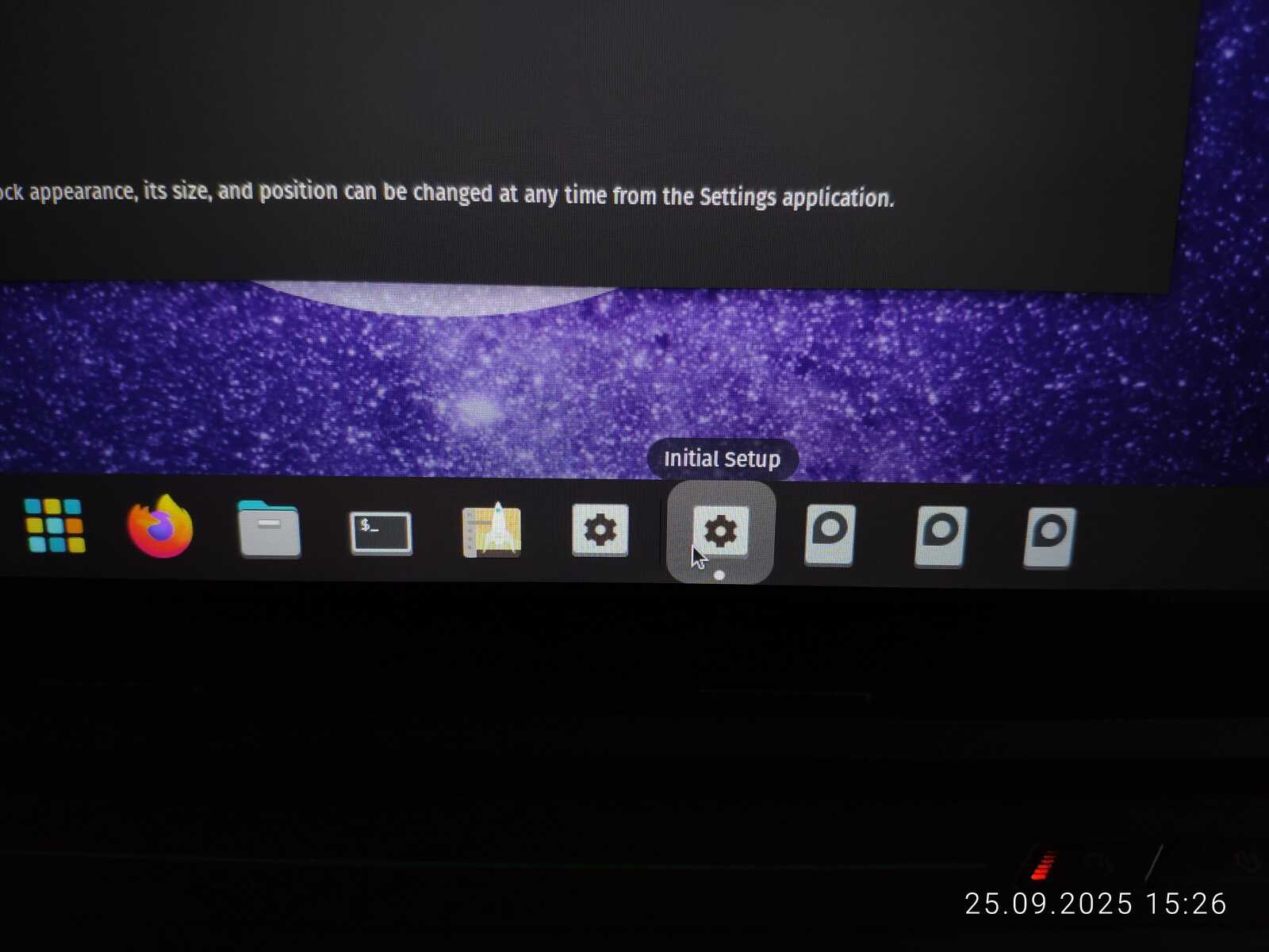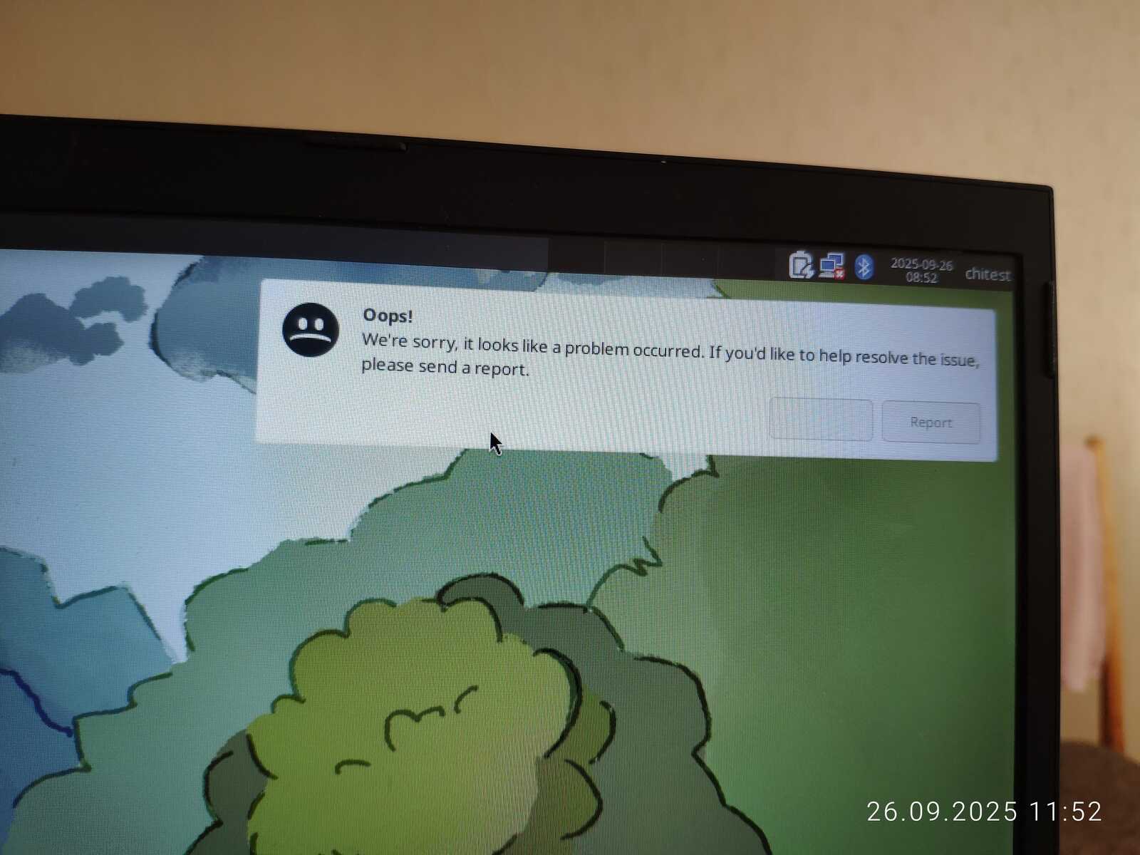 Но всё было бы слишком хорошо, если бы не вылезло сообщение о какой-то ошибке с кривыми кнопками интерфейса. Наверное, ругается на то, что я установил Линукс без доступа к интернету, и оно не смогло накачать обновлений без моего разрешения. Какая жалость...