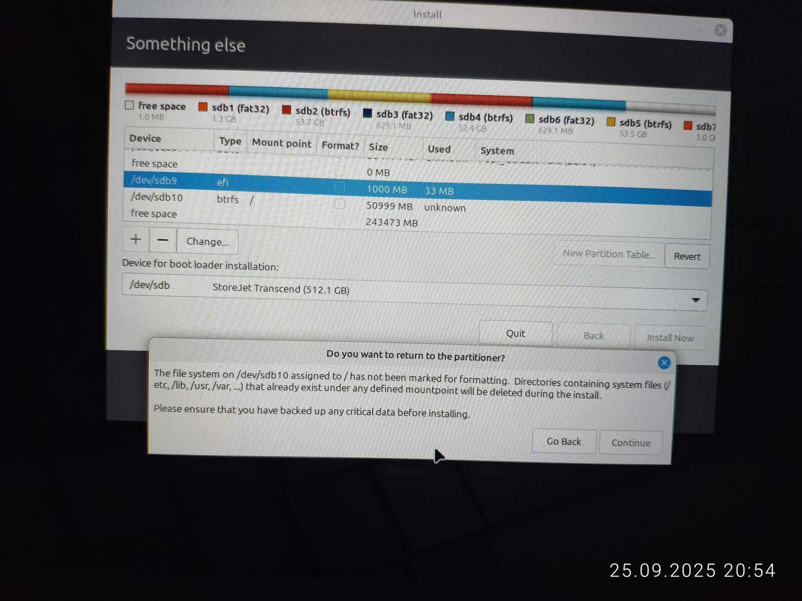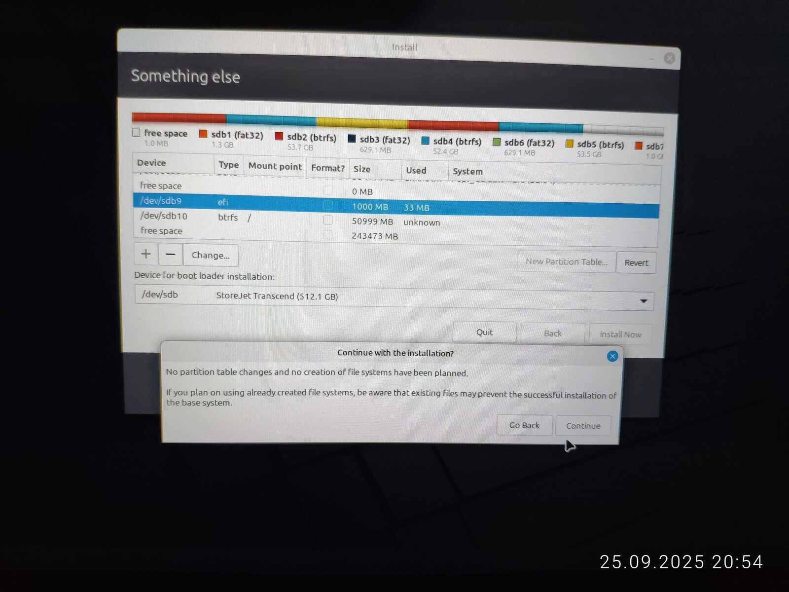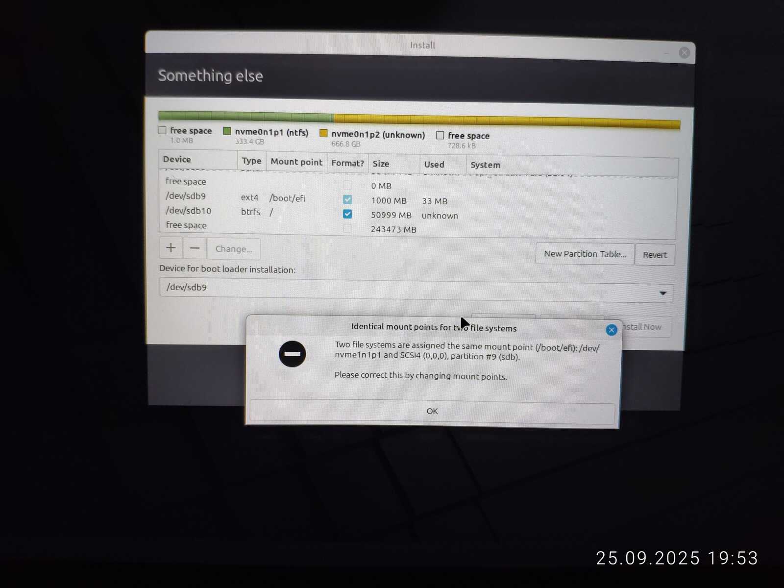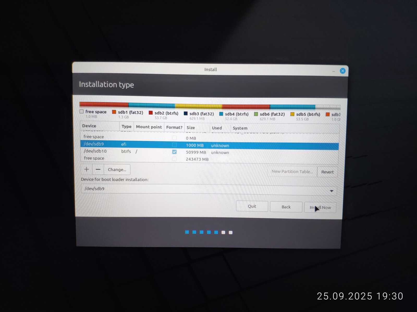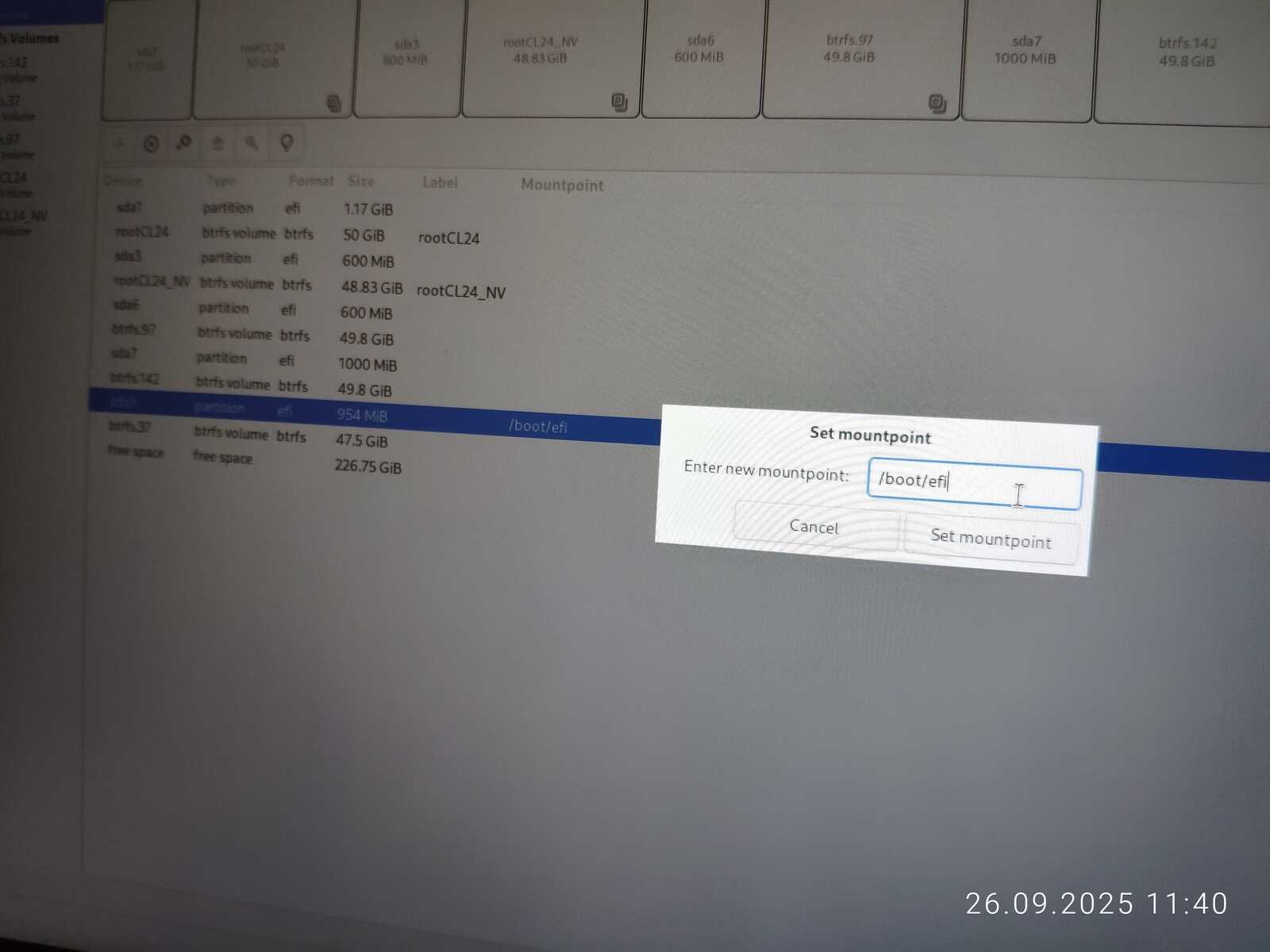 Опять занимаюсь снятием галочек с каждого EFI раздела, чтобы оставить только необходимый. Опять пытаюсь установить. Ну не хочу я уничтожать пять установленных операционных систем ради одного Linux Mint, отдавая всё во власть программы автоматической разметки.