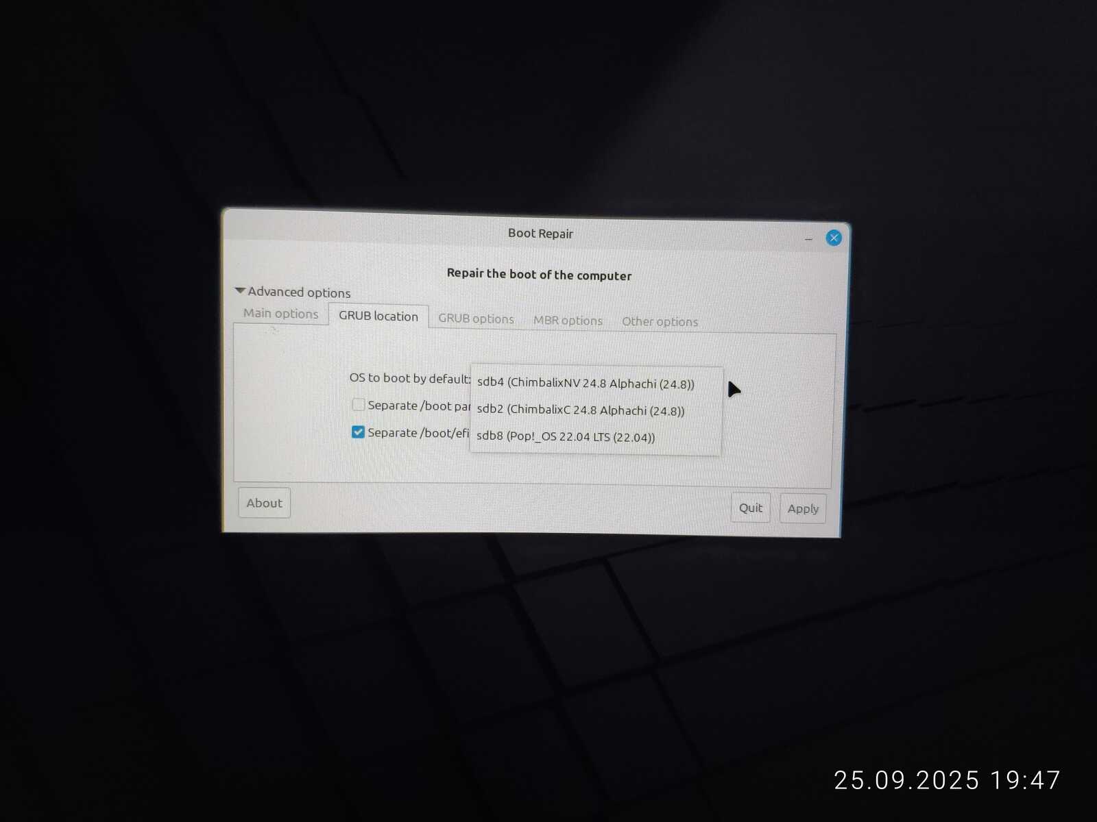 Ну а Linux Mint вообще не удалось установить, ибо программа установки не способна адекватно установить загрузчик.