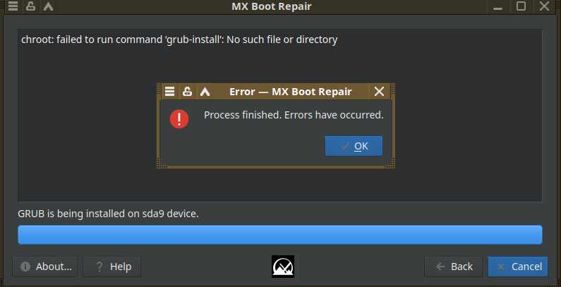 Но что-то пошло не так. Увы. У дистрибутива Linux Mint нет даже утилиты grub-install.