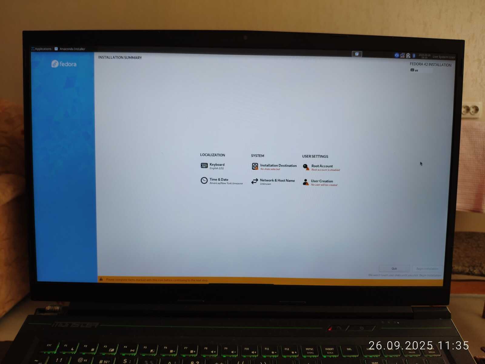 Из серьёзных недостатков могу отметить неправильные настройки электропитания, что привели к отключению дисплея прямо во время установки дистрибутива Fedora. Зная, какой кривой Linux, я не удивился бы, если бы это привело к серьёзным проблемам.
