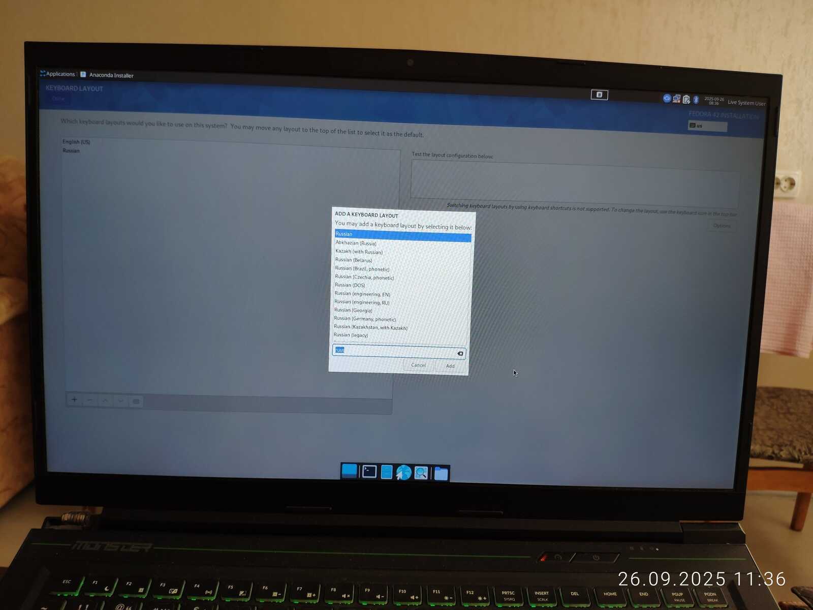 Полноценно настроить клавиатуру невозможно. Но хотя бы разметку дисков получилось сделать без проблем.