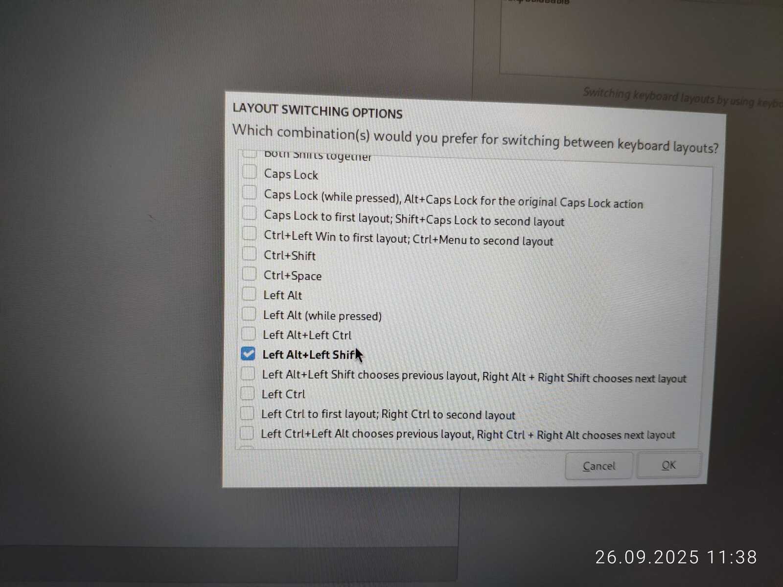 Настройка клавиатуры всё ещё уступает возможностям дистрибутива Chimbalix, но уже не так печально, как в прочих Линуксах. Правда, сочетание клавиш для переключения раскладки почему-то не хотело работать.