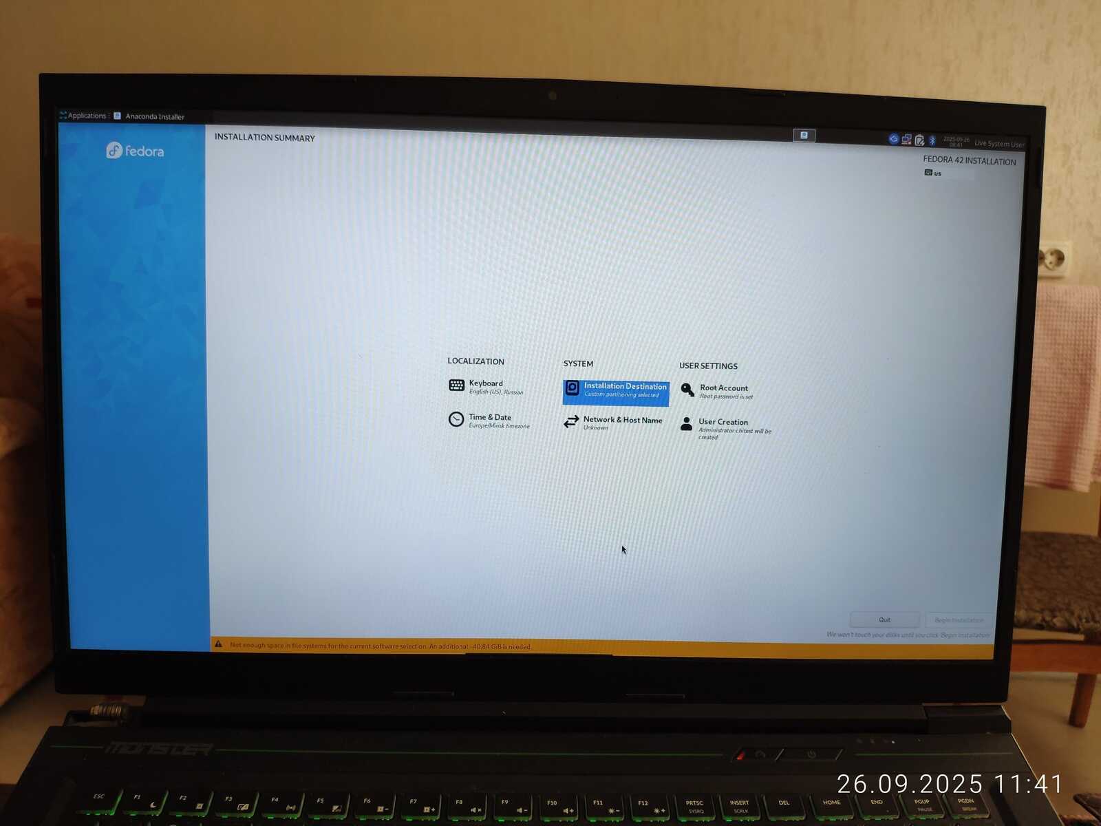 Сразу перехожу к дистрибутиву Fedora. Ибо Debian 13 меня крайне разочаровал диктаторскими замашками разработчиков.