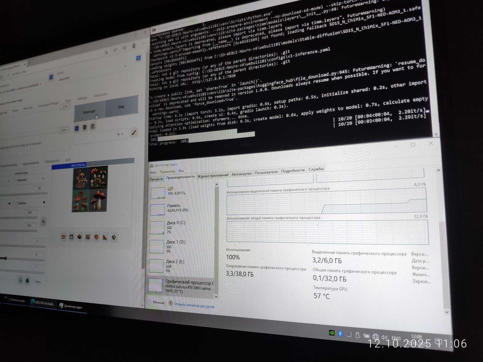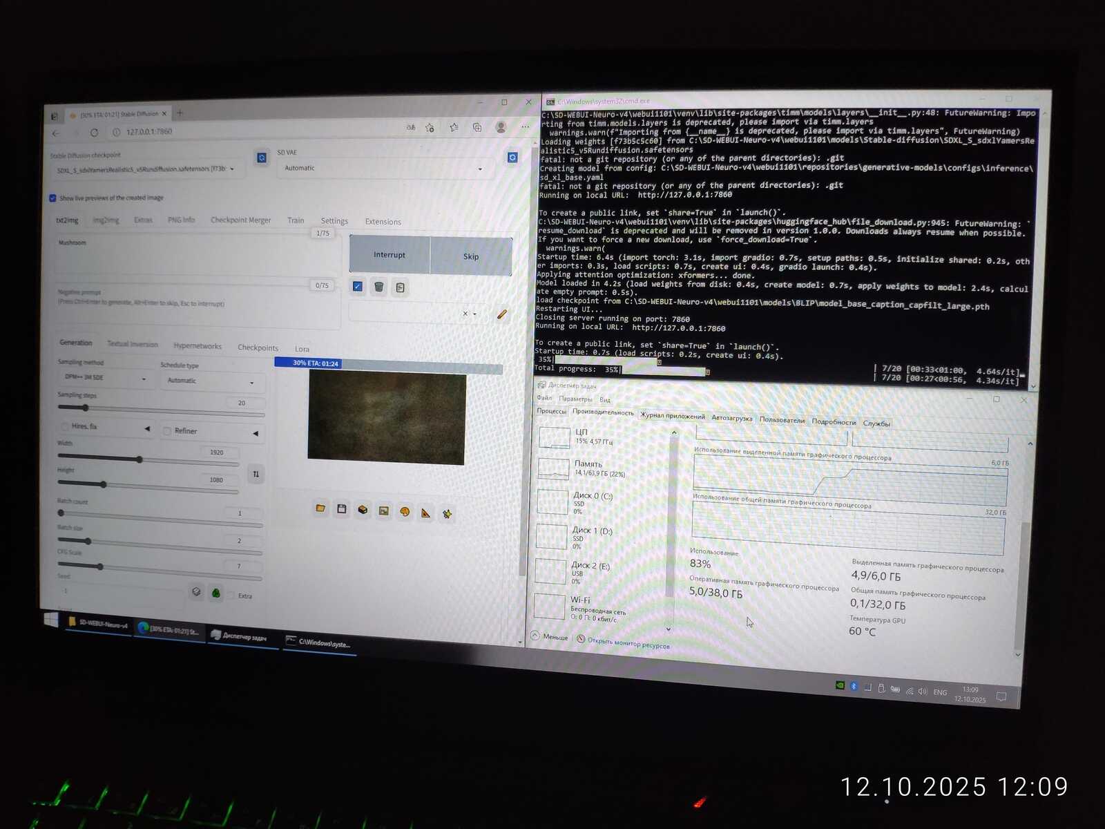 И да, если кто-то думает, что с помощью процессора генерация выйдет быстрее, сразу же разочарую. Ryzen 5 3500X способен выдать одну итерацию за 36 секунд, что в 3.6 раза медленнее, чем способна GT 1030.