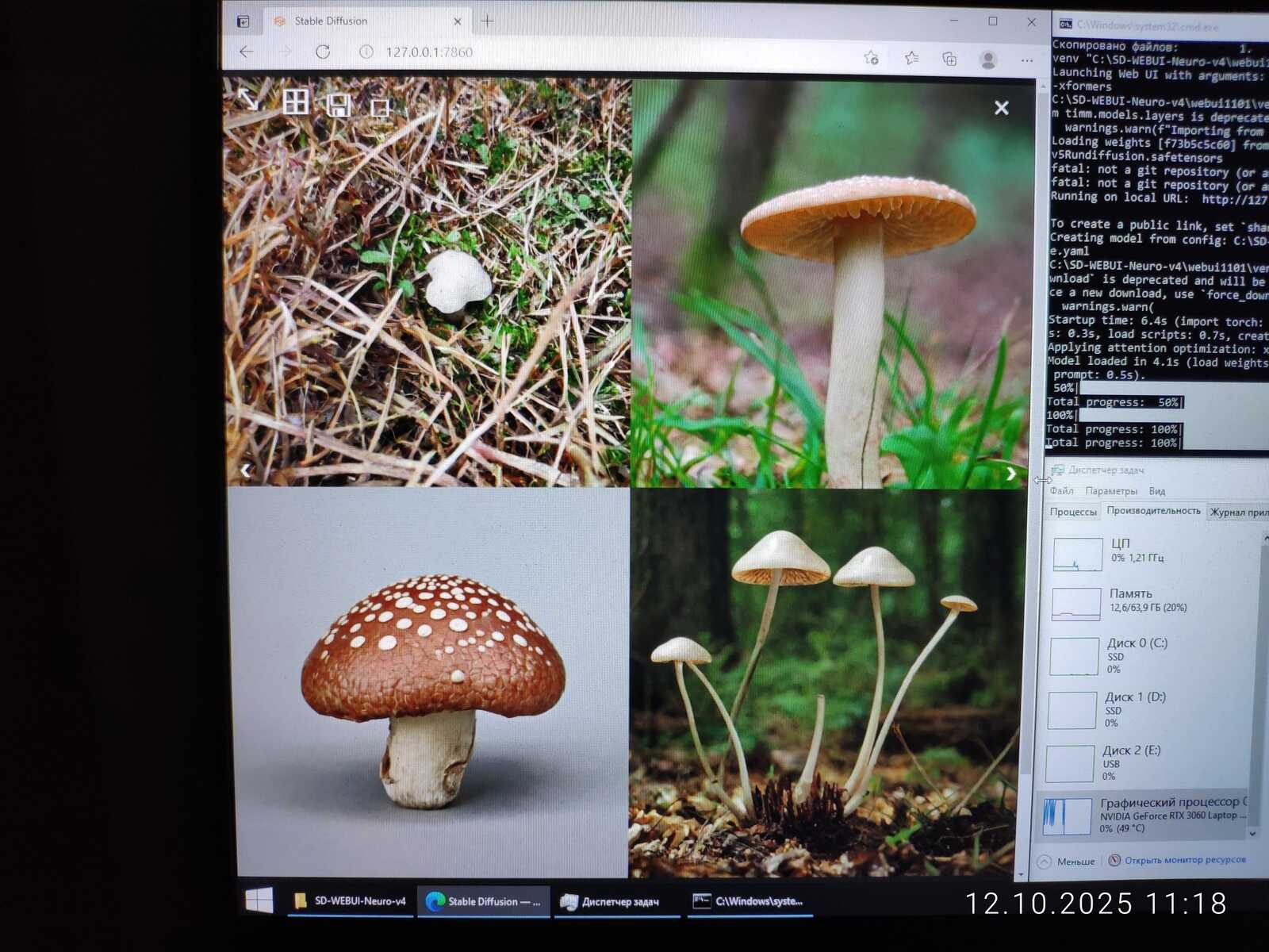 Подниму, так сказать, до уровня сборки, предназначенной для Chimbalix, чтобы можно было SDXL модели использовать. Ну и оптимизаций добавлю, чтобы можно было вот так генерировать 4 изображения одновременно в разрешении 1920x1080 на видеокарте с 6 ГБ видеопамяти.