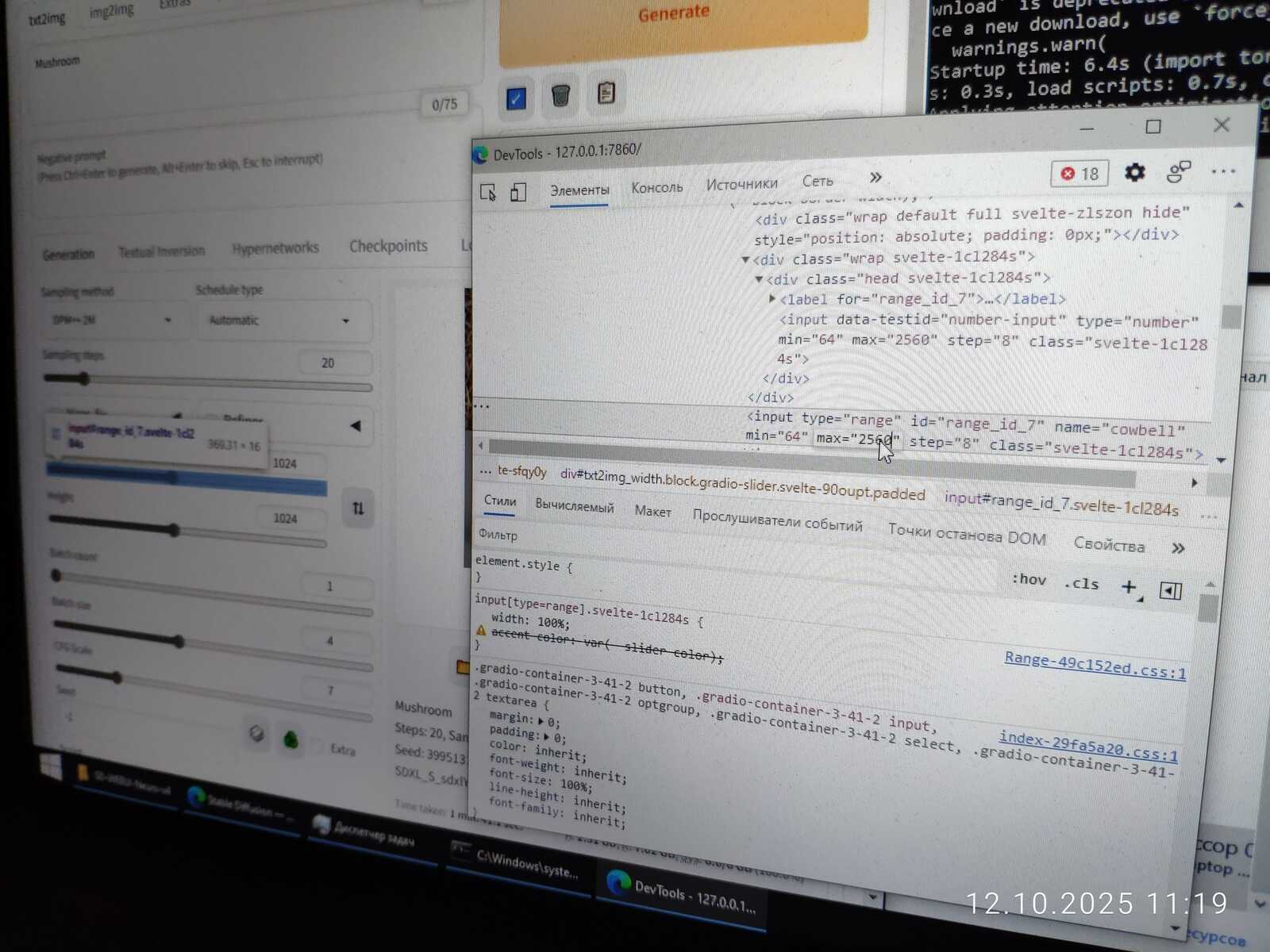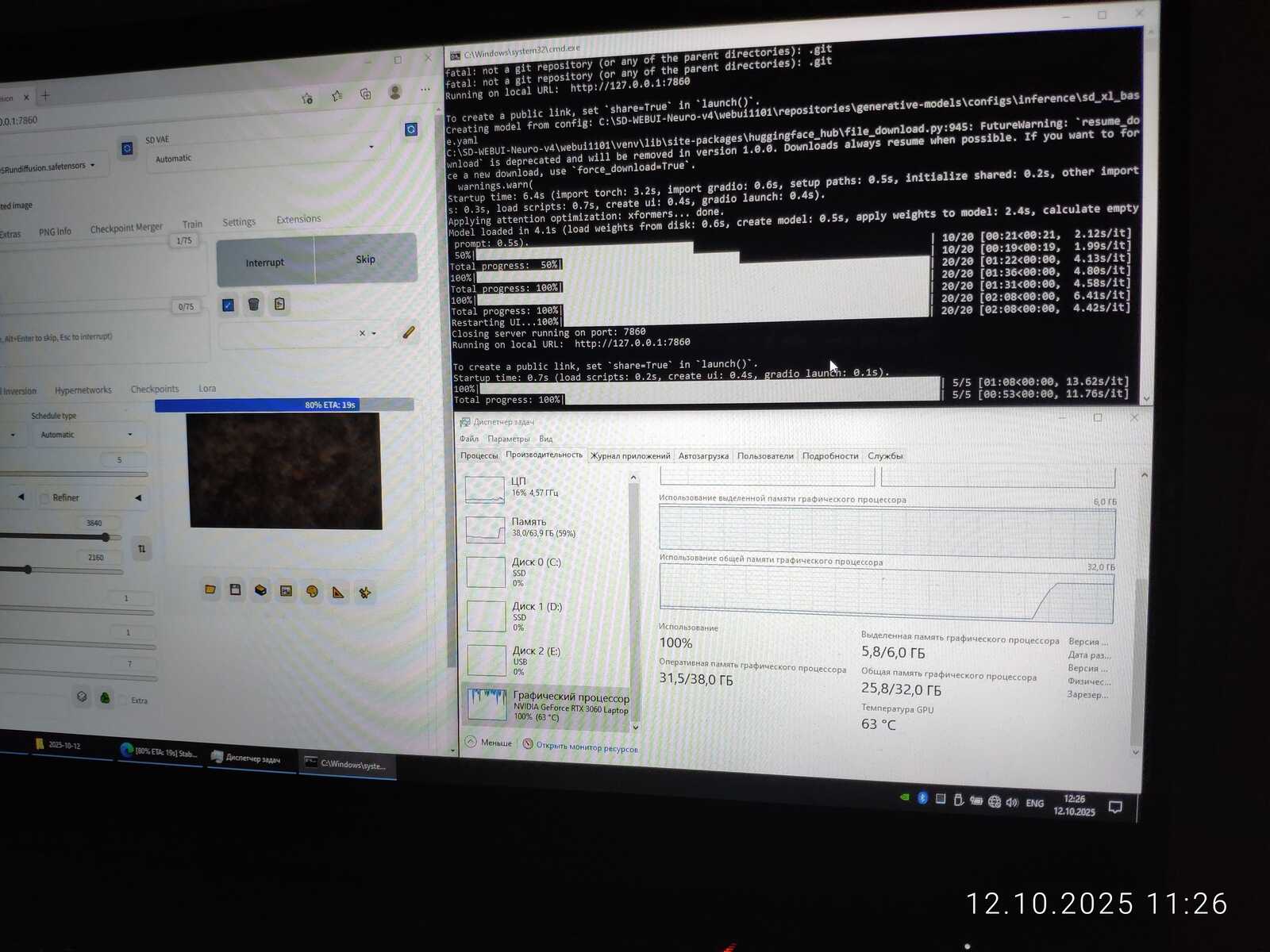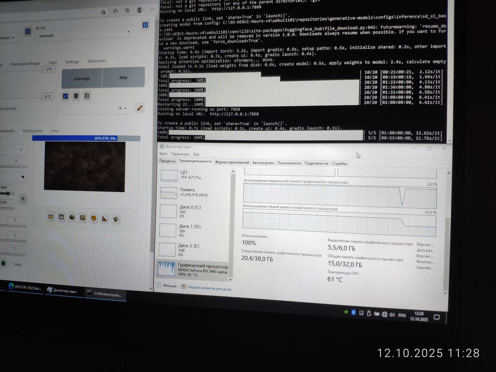 Даже серьёзный i7-10875H способен выдать итерацию лишь за 14 секунд при таком же разрешении генерации 768x768, когда GT 1030 выдает итерацию за 9-10 секунд.
