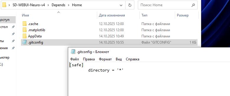 Разумеется, оно добавляет файл конфигурации не в домашний каталог пользователя, а в вынесенный каталог внутри сборки. Потому оно не затрагивает системный Git. Если такой есть. Данный подход бонусом ограждает главный домашний каталог пользователя от всякого мусора.