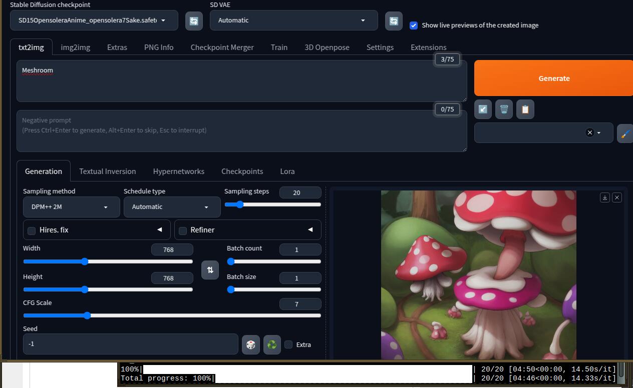 Пробуем генерировать, используя SD модель.