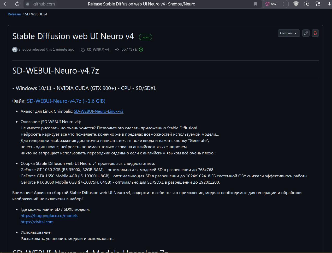 Хоть у софта для Linux и есть некоторое количество загрузок, но это просто капля в море по сравнению с количеством загрузок у софта для Windows. И так как сборка SD web UI Neuro для Windows уже устарела на целых два года, есть смысл выпустить обновлённую версию.