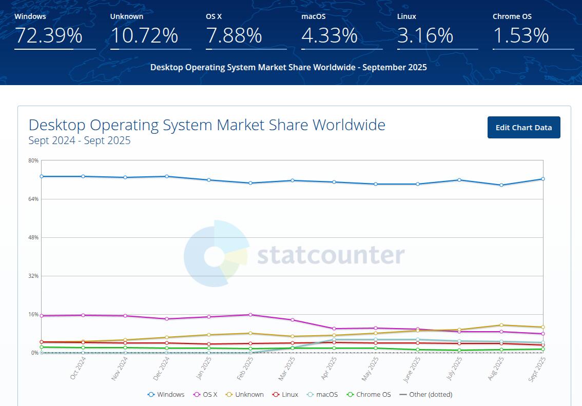 Даже древняя Windows 7 живее Линуксов на сегодняшний день. Даже Windows XP до сих пор используется и отражается в онлайн статистике. И это при том, что большинство систем работающих под управлением Windows XP, скорее всего не подключены к интернету и не учитываются. Тем временем ОС зависимые от репозиториев, просто нежизнеспособны без подключения к интернету.