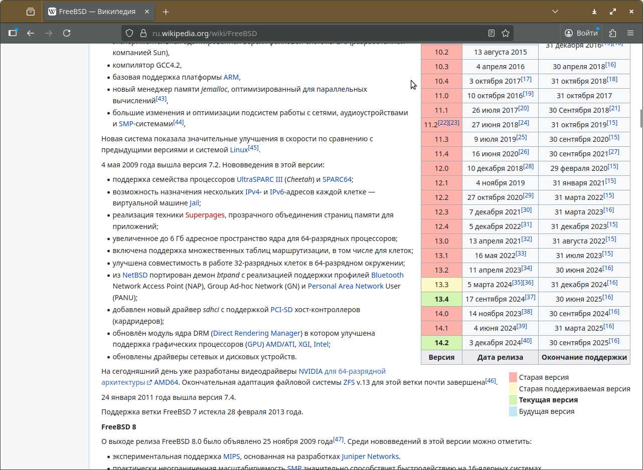Давайте откроем страницу какой-нибудь ОС, эксплуатирующей репозитории для распространения софта и хранения системных компонентов. Возьмём FreeBSD. Что мы видим? Есть огромное множество версий, но только три из них поддерживаются. Есть ли жизнь за пределами поддерживаемых версий у такой системы? Скорее нет, чем да.