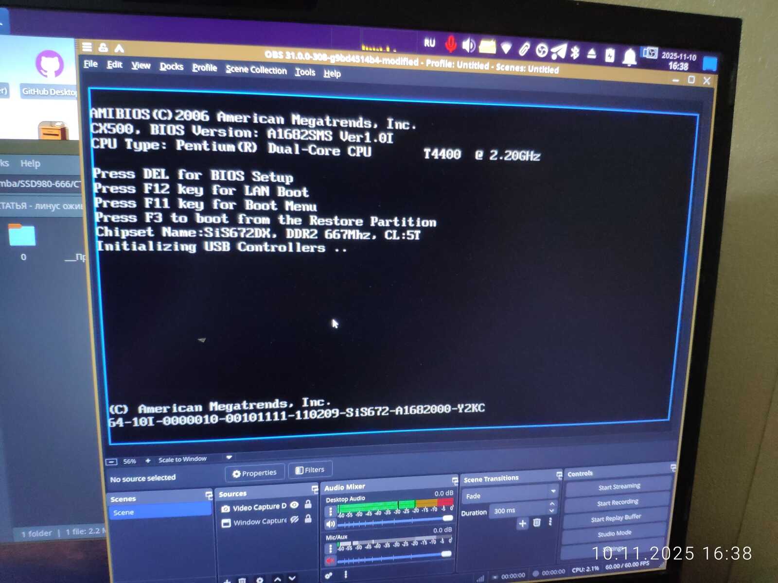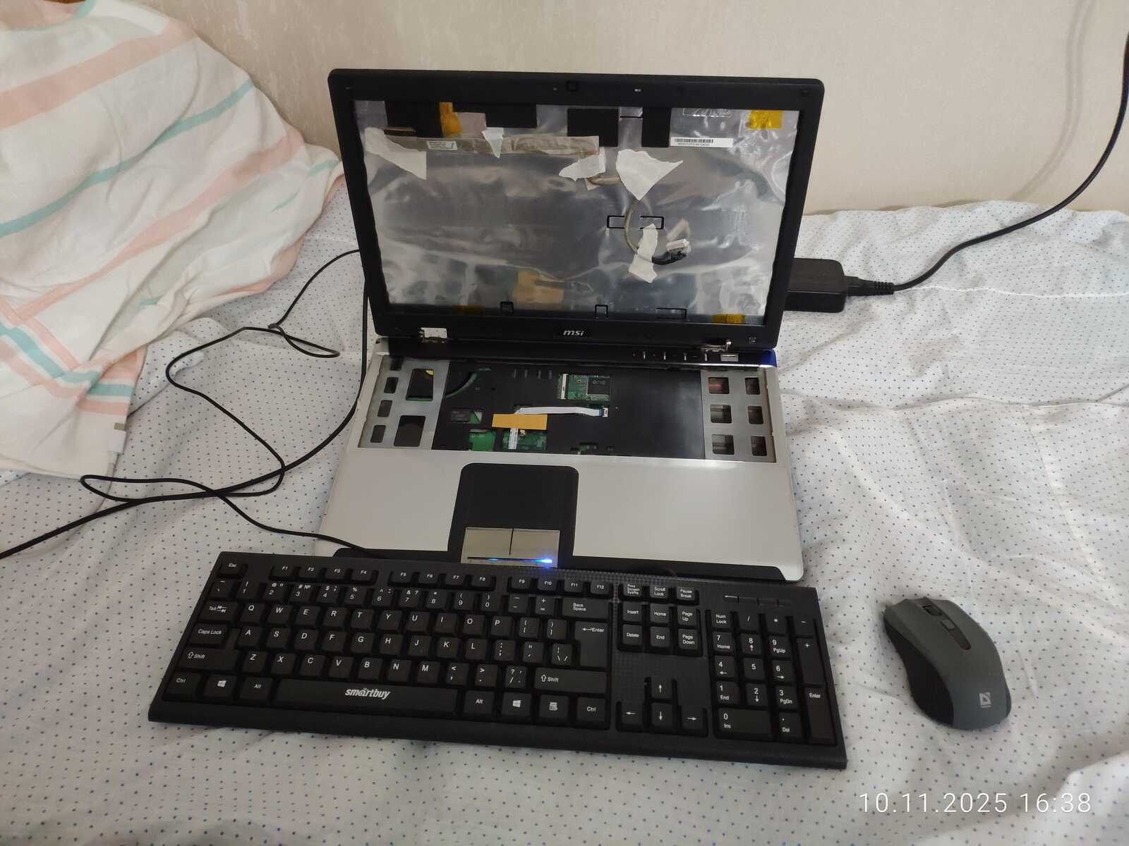 В тестировании участвует старый ноутбук MSI CX500 на основе Pentium Dual-Core T4400 с тремя гигабайтами ОЗУ и Radeon HD 4330 на 512 МБ. В ноутбуке нет встроенной клавиатуры, дисплея, DVD привода. Но это не проблема, ведь можно использовать переходники и карту захвата для получения изображения.