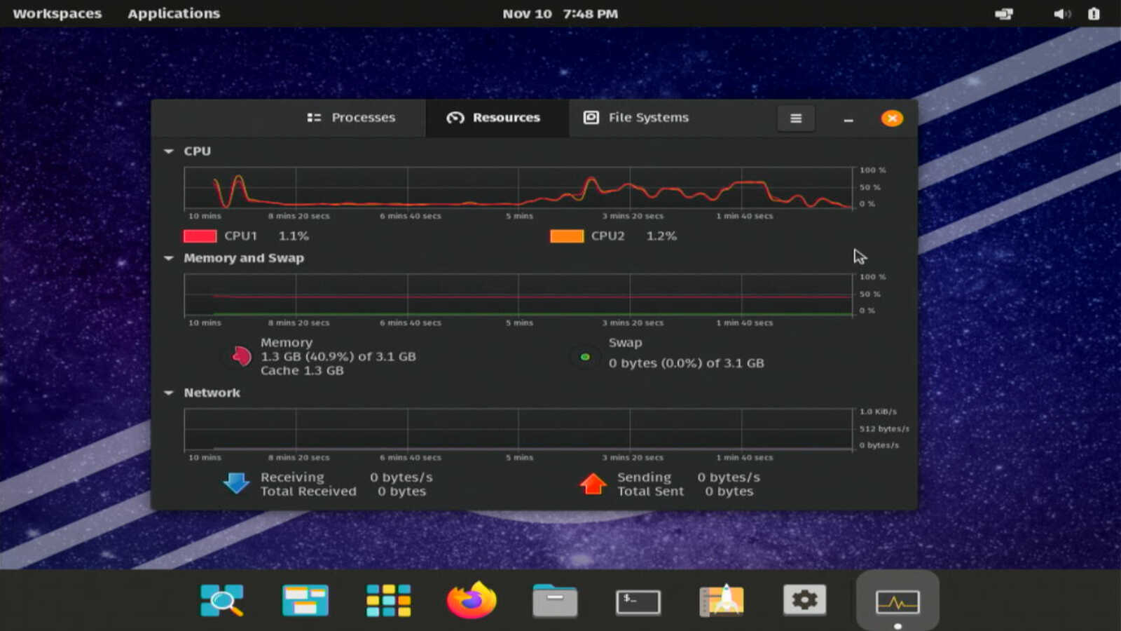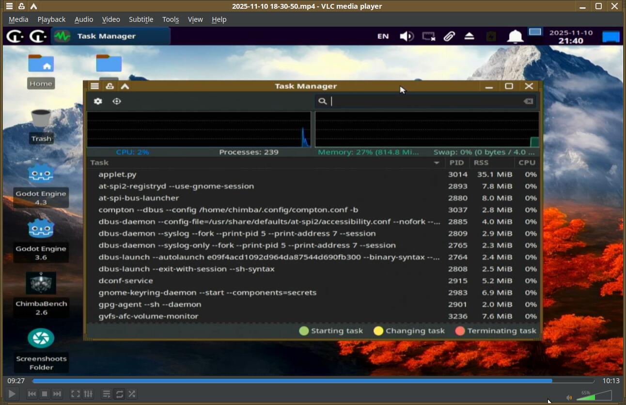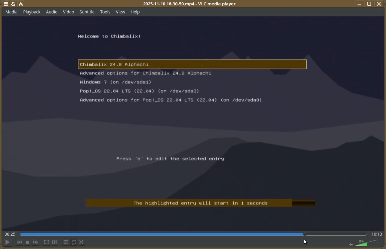 Chimbalix 24.8 полностью запустился за 42 секунды. Отмечу лишь тот факт, что при каждом запуске объём используемой памяти всегда различается обычно в меньшую сторону. Только Pop!_OS всегда 1.3 ГБ использует после запуска. Так что ранее введённые значения памяти в таблице трогать не буду.