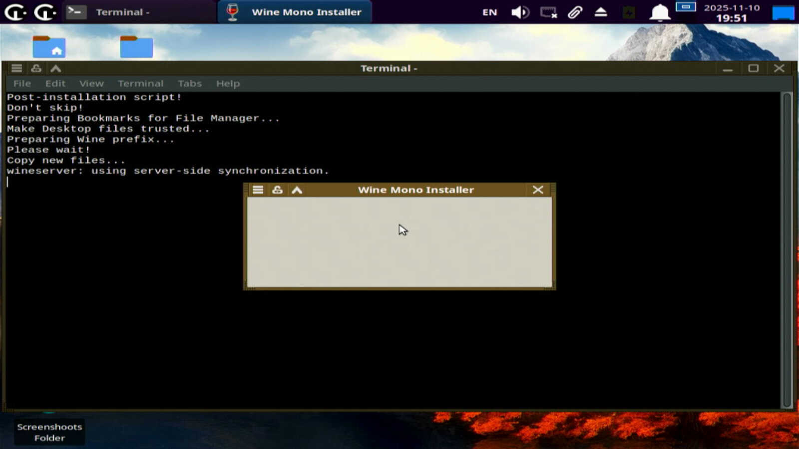 Настала очередь дистрибутива Chimbalix. Этап первоначальной настройки прошел почти без проблем. Только WINE Mono что-то возникает. Порой видел, как сам WINE LG отказывался работать, если у процессора не хватало каких-либо инструкций. Так что это классика софта для Linux, вечно проблемного и кривого. С этим будем разбираться потом, если вообще повлияет на работоспособность.