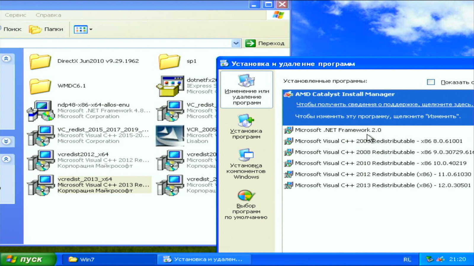 Не знаю, всё ли необходимое установил из фреймворков. Очень давно использовал Windows XP, но это дело уже в процессе использования будет доделываться. Далее займёмся операционной системой Windows 7.