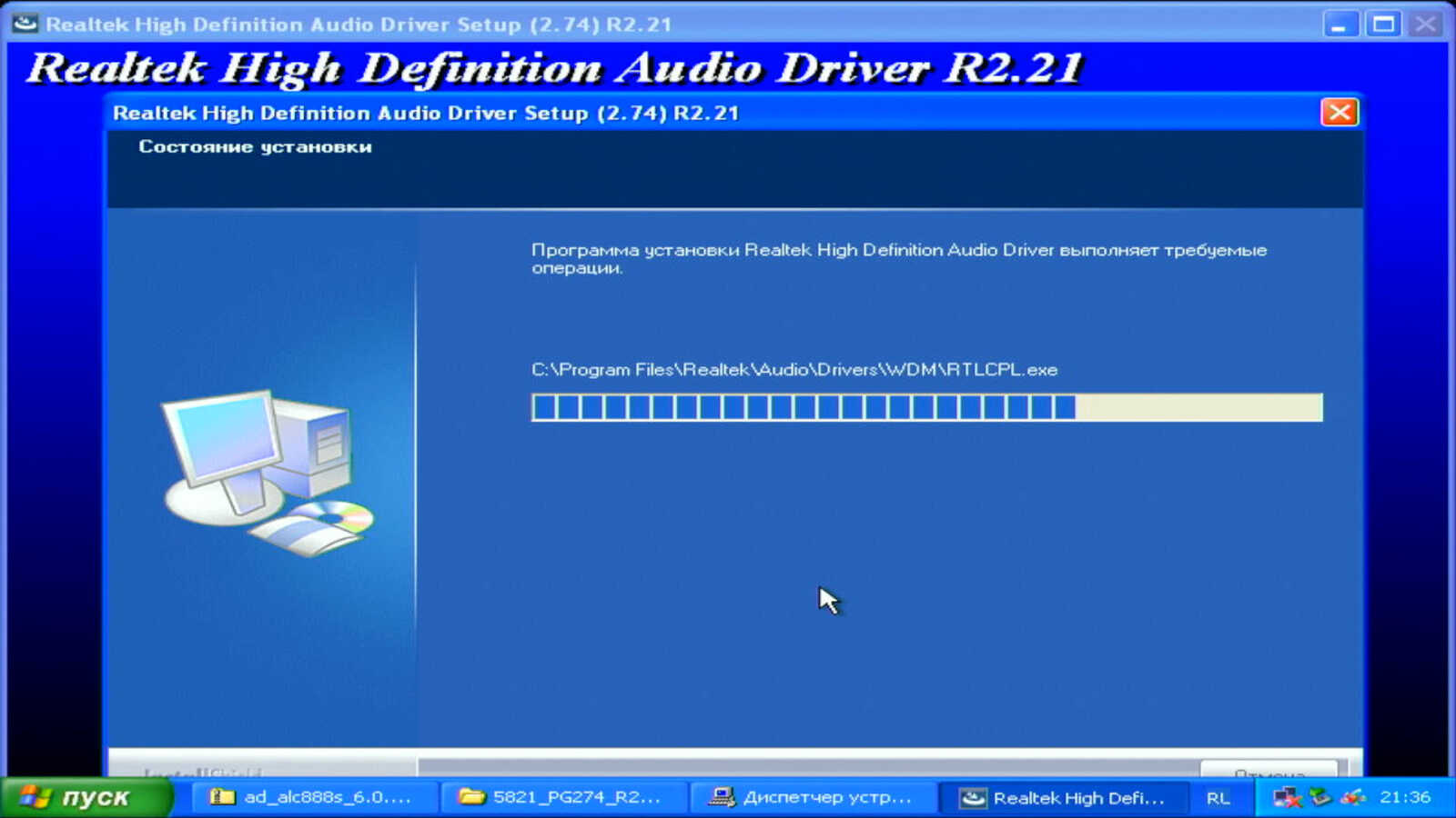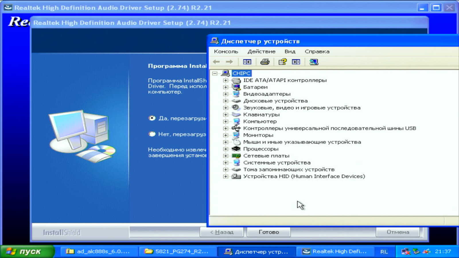 Хотя установочные пакеты и просят перезагрузить компьютер, но драйвер аудио заработал сразу после установки. Звук появился. Только вспомогательный софт с настройками не запускается сам без перезагрузки.