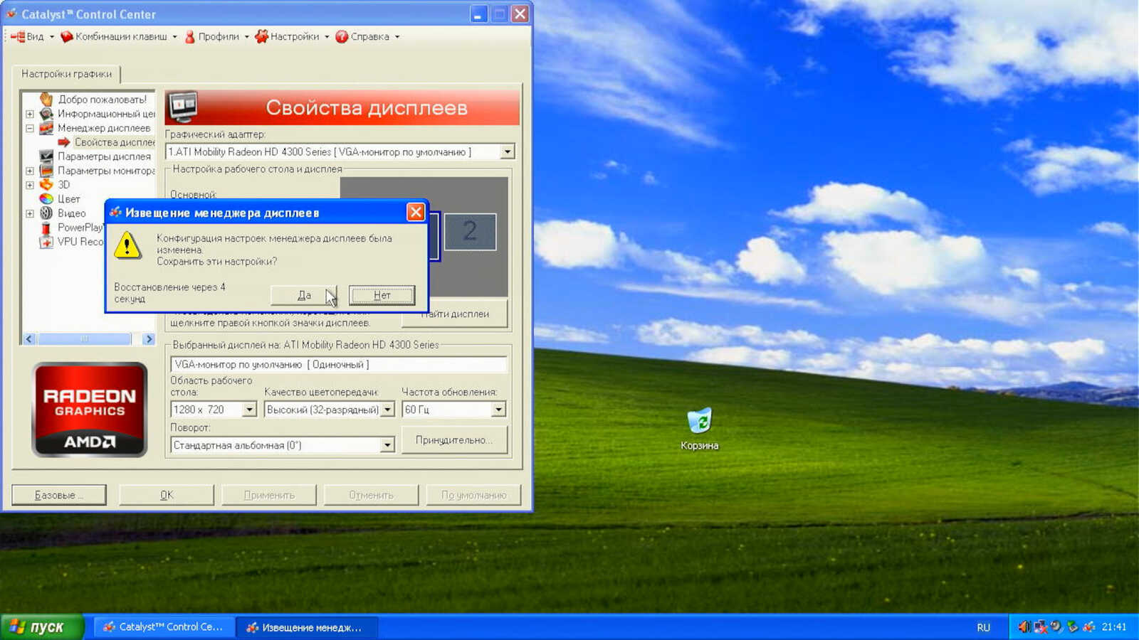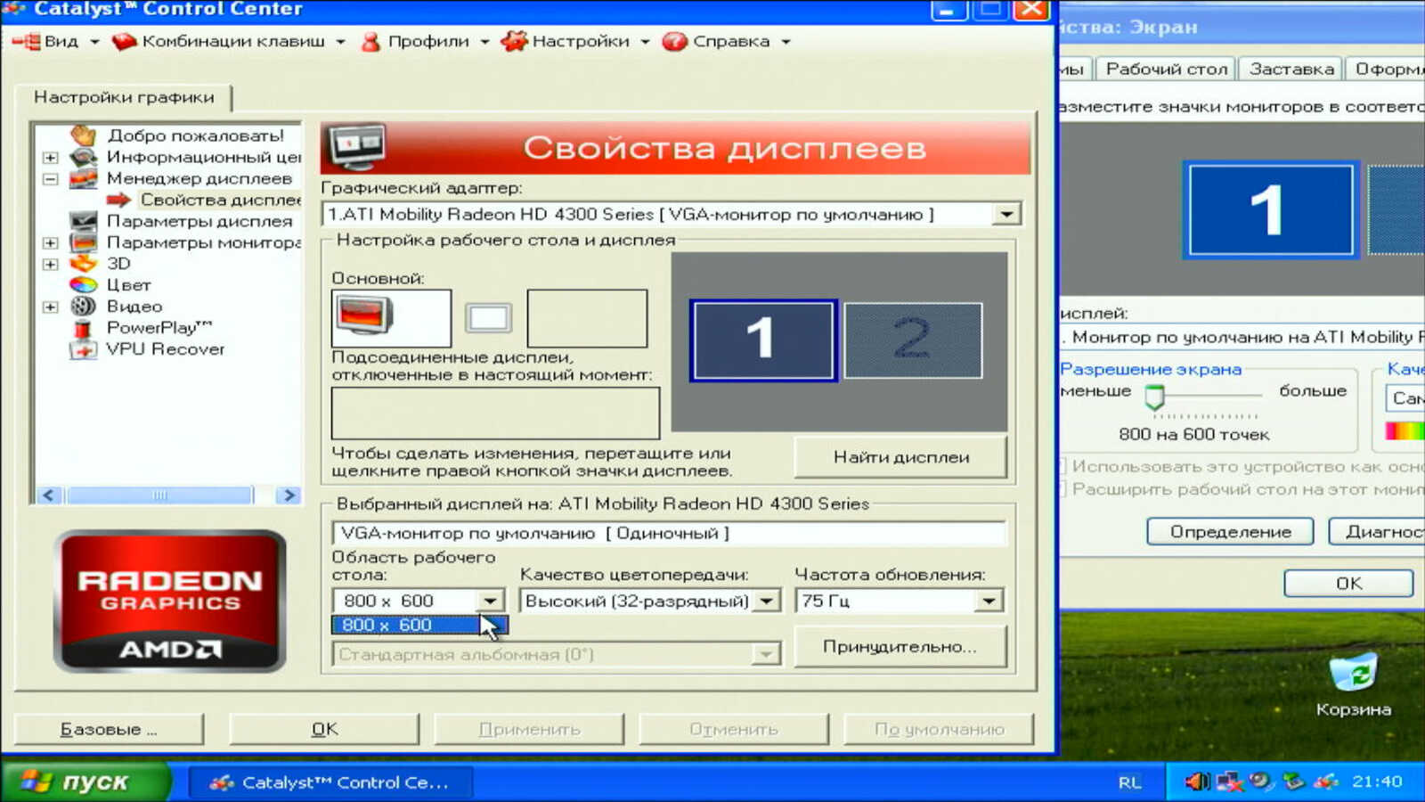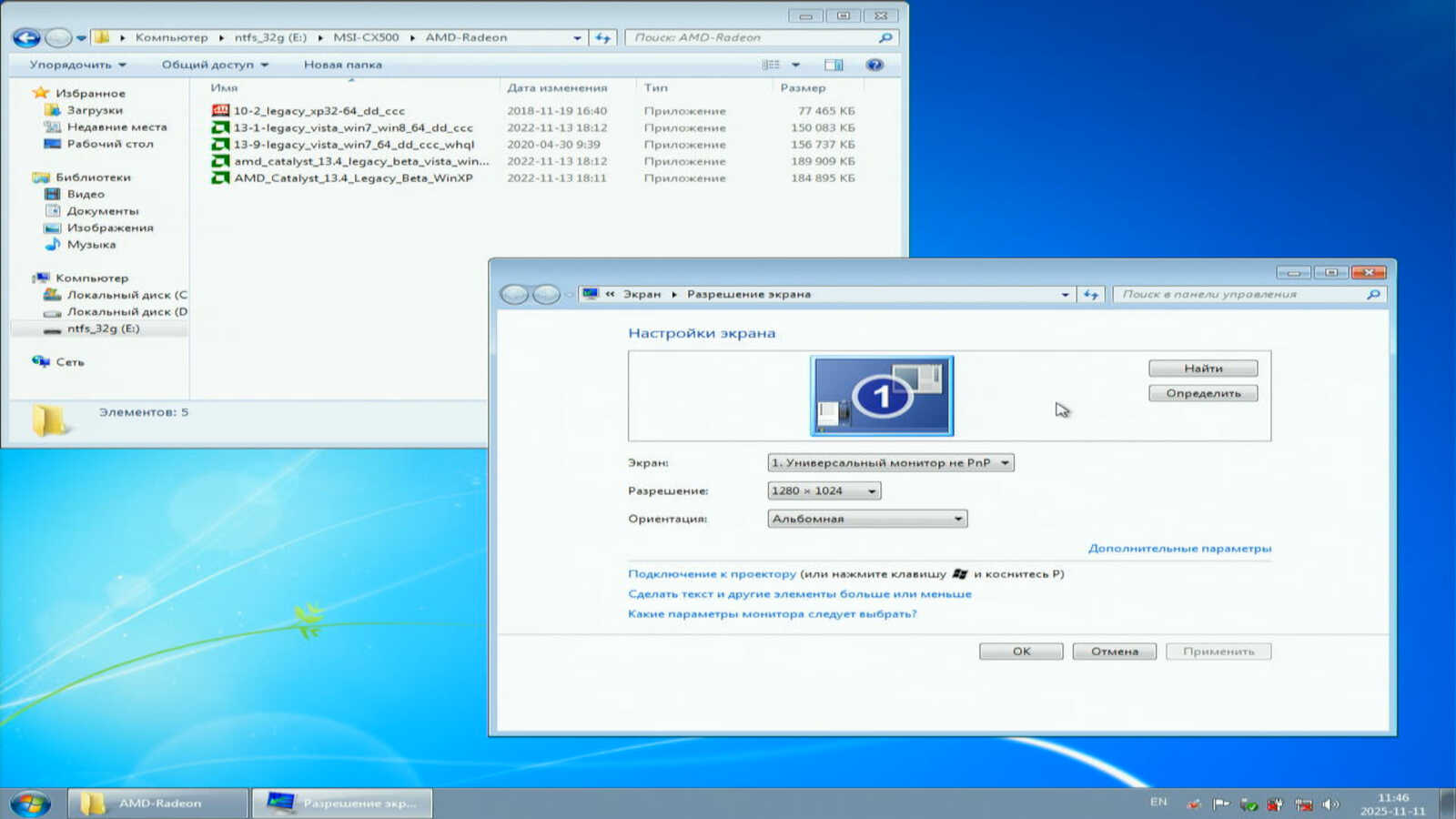 Если в Windows XP я установил драйвер Catalyst 13.4 и с выводом изображения на дисплей не было никаких проблем, то в Windows 7 устанавливаю проблемный Catalyst 13.9. Он просто не способен адекватно вывести изображение на VGA выход. Почему-то всё сильно ужато по высоте и никак не исправить через настройки драйвера. А ещё рассказывают сказки, что у AMD хорошие драйверы видеокарт.