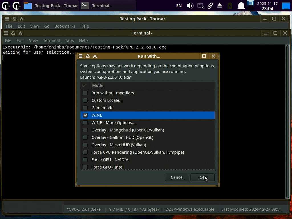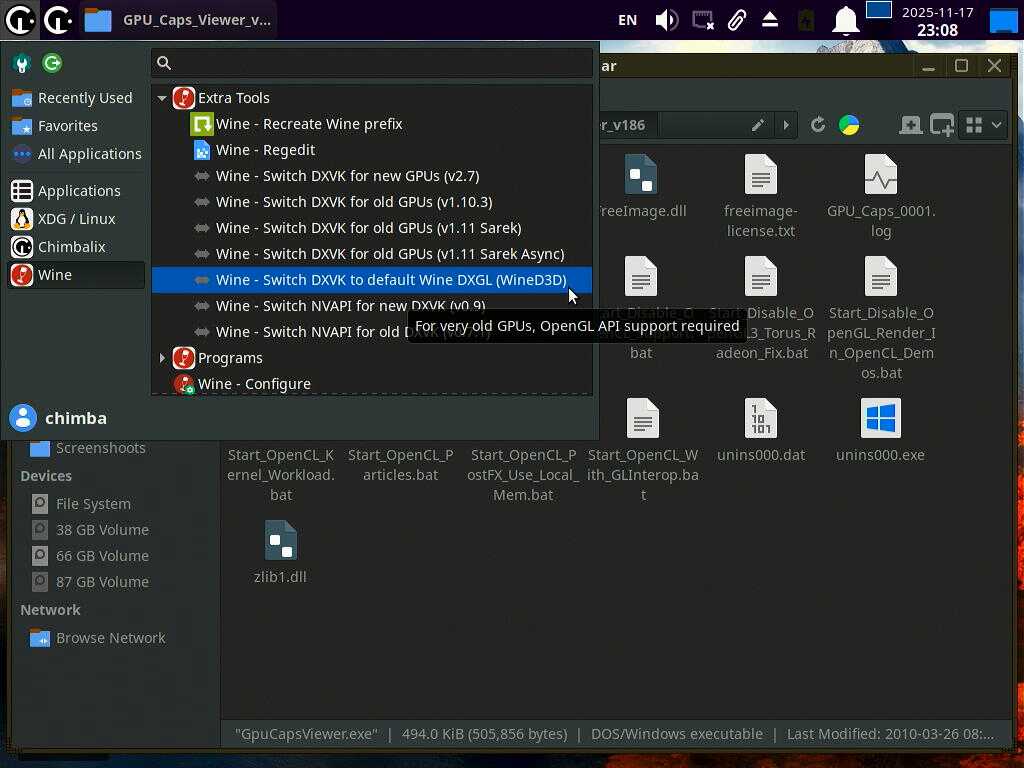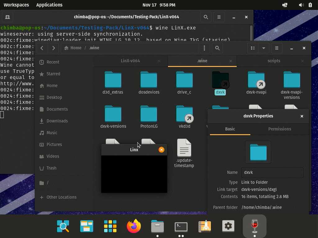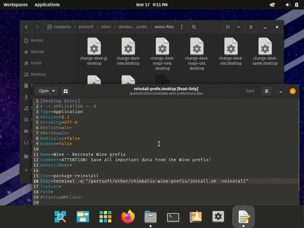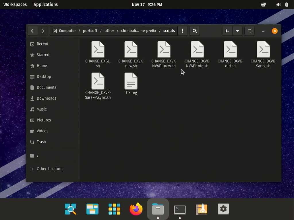 Ну а для настройки версий DXVK и прочего мне придётся запускать терминал и руками вводить скрипты нужные, потому что рабочее окружение GNOME слишком отсталое для того, чтобы без переделки оно могло запустить уже готовые ярлыки от другого Линукса.
