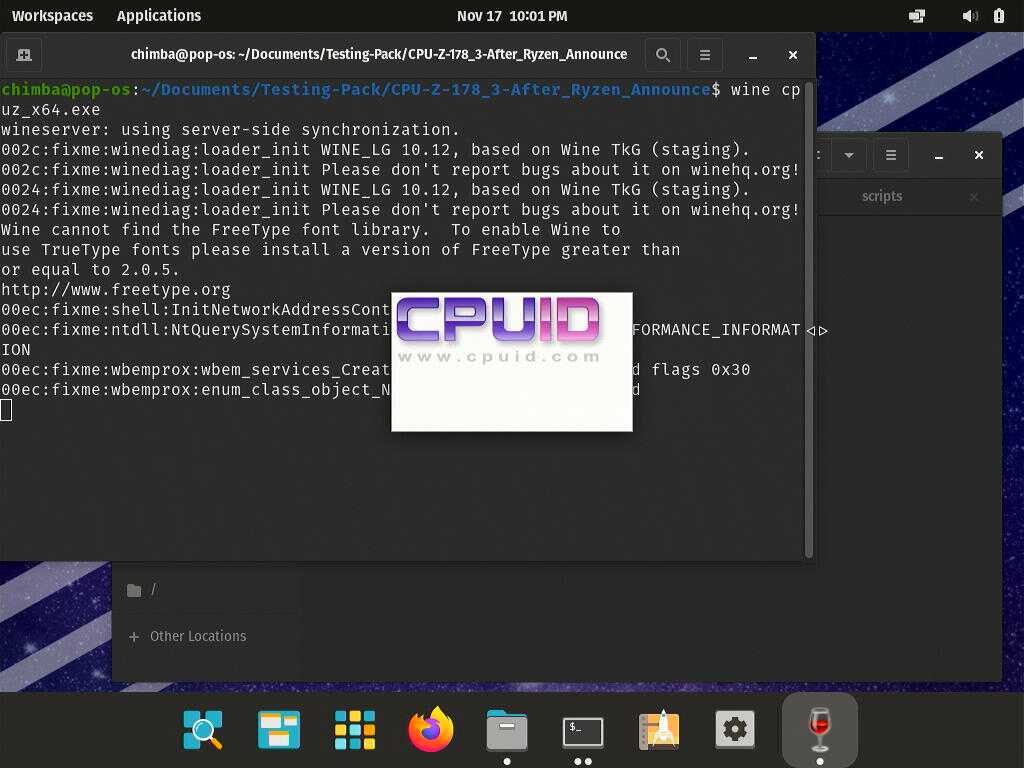 Дистрибутив Pop!_OS, к сожалению, оказался не способен запустить ни один синтетический тест, даже учитывая, что был перенесён WINE LG из дистрибутива Chimbalix, так как из коробки вообще ничего не было. На этом закончим с данным Линуксом и перейдём к Chimbalix.