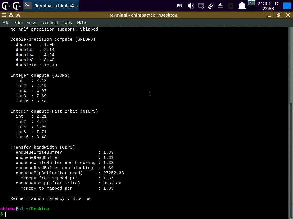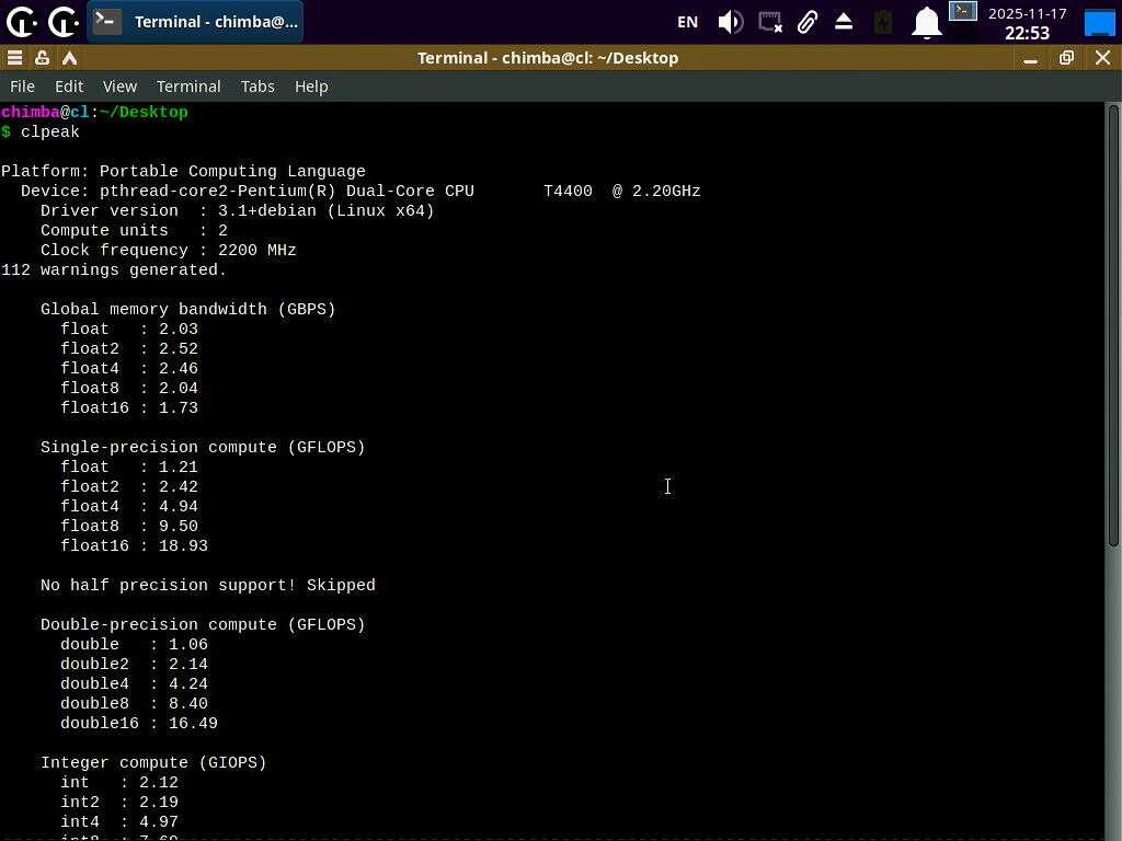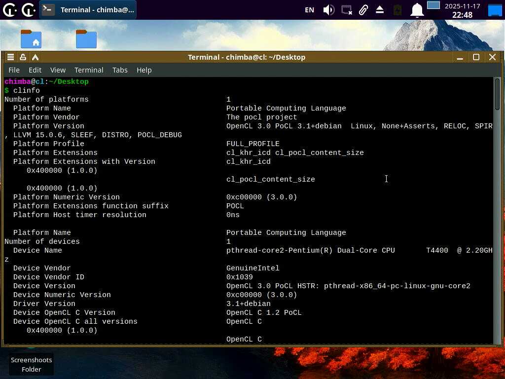 Тут уже есть набор утилит для получения информации. Даже OpenCL есть и работает, правда, только на процессоре, потому что вместо нормального драйвера видеокарты у AMD Radeon под Линуксами предоставляет API проект Mesa3D.