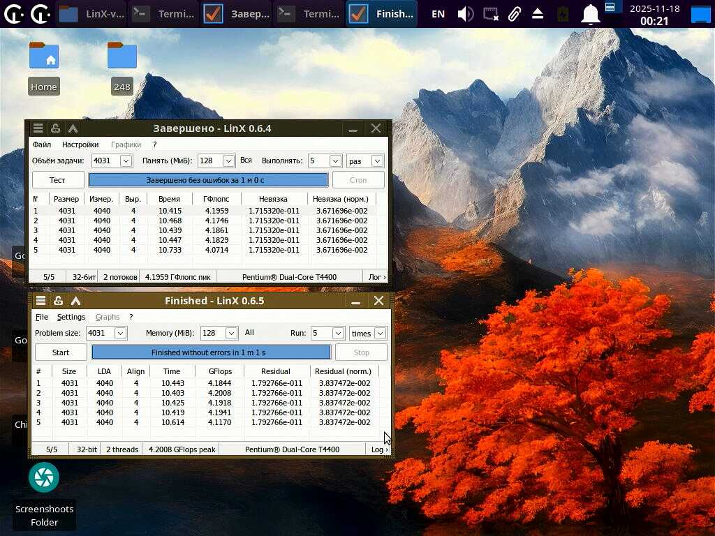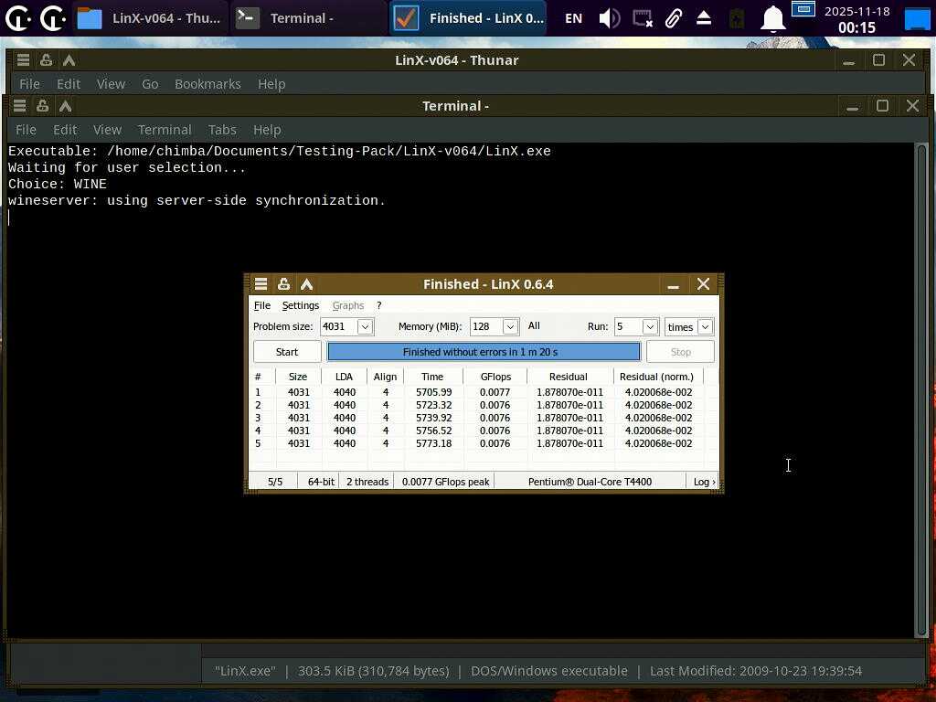 LinX тоже имеет проблемы с 64 битным тестом, но 32 битный тест работает как положено. А ведь под управлением Windows всё работало отлично.