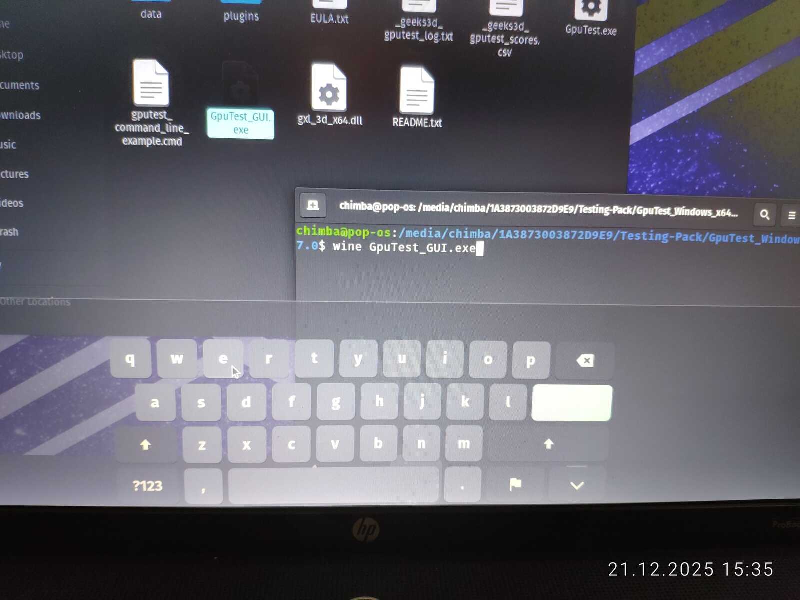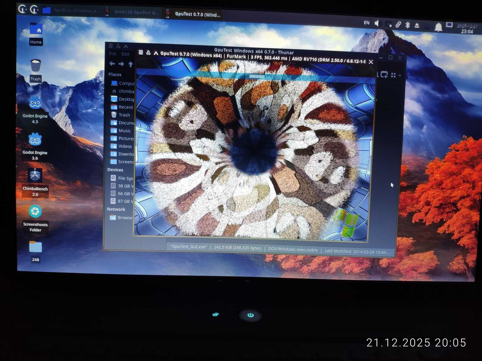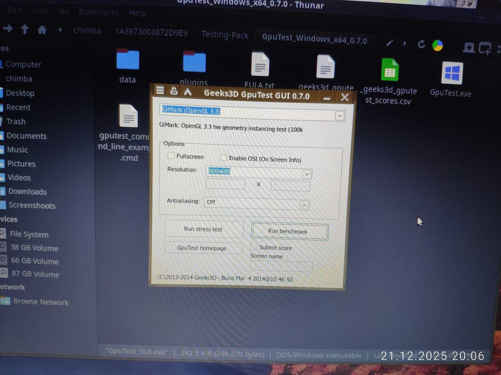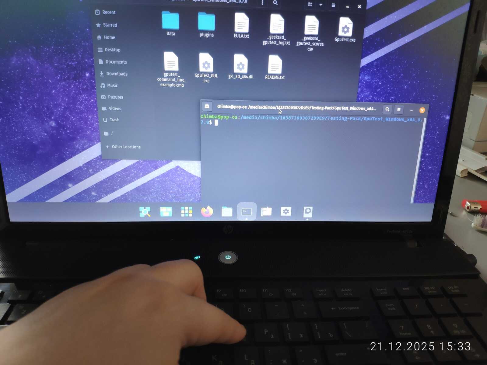 С тестом GiMark драйвер видеокарты AMD не справился в Линуксе. Увы.