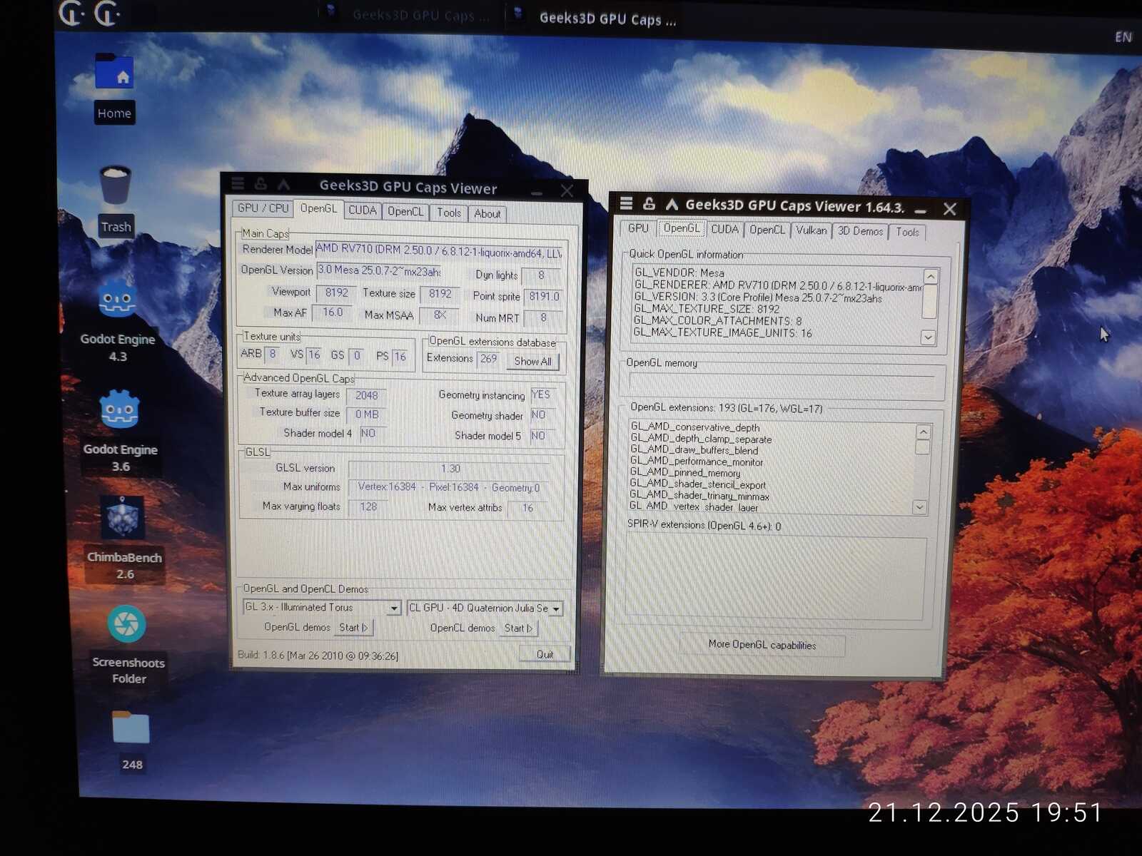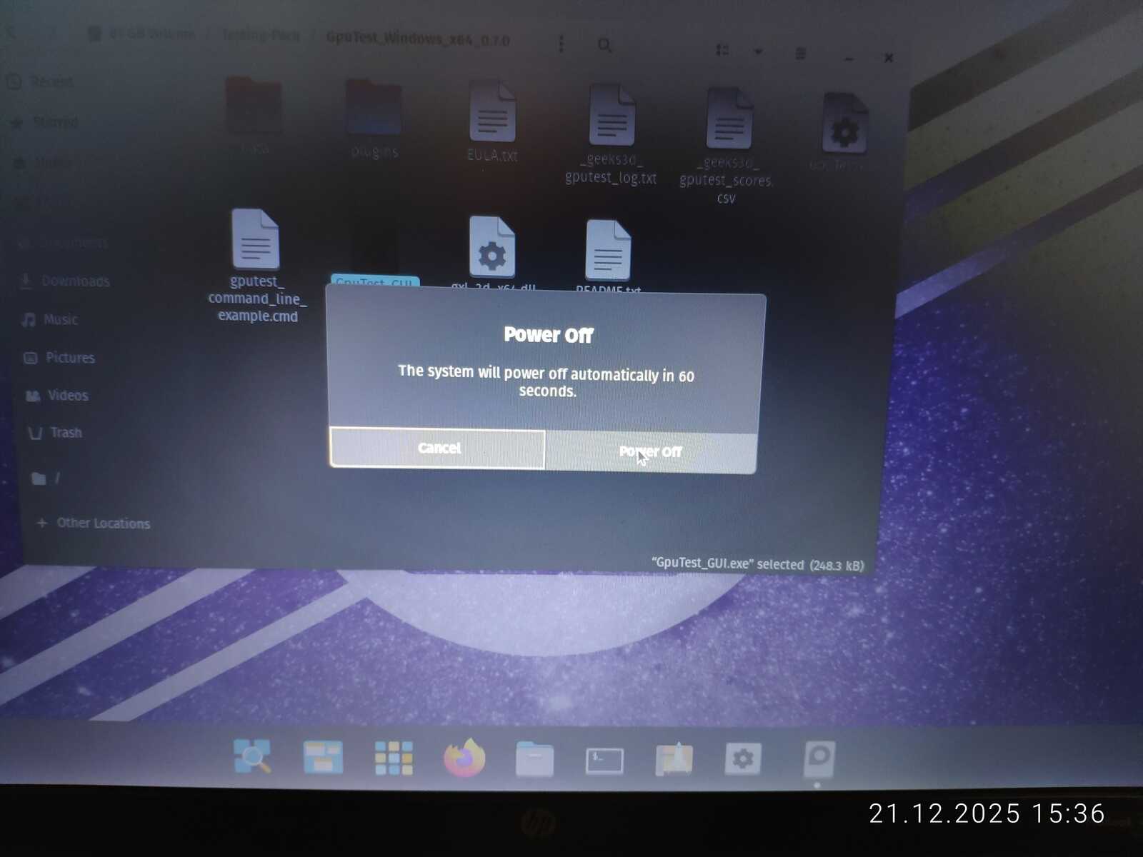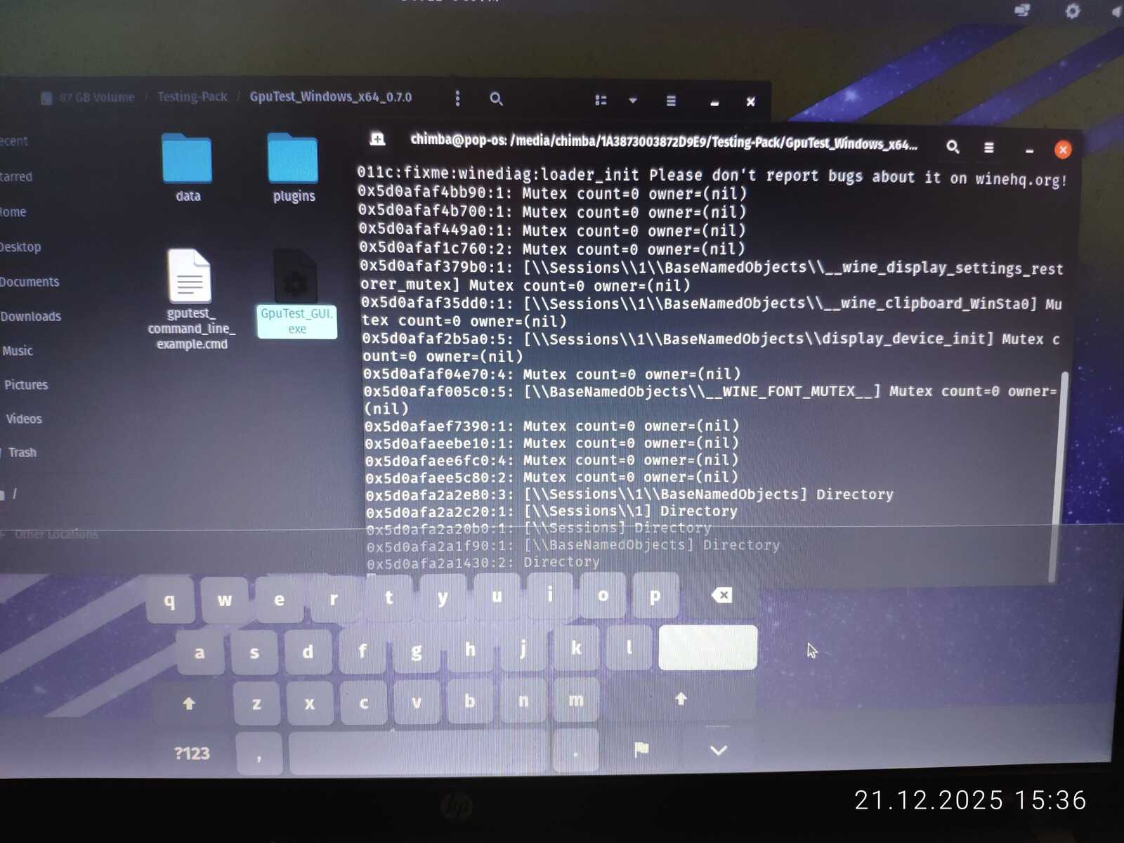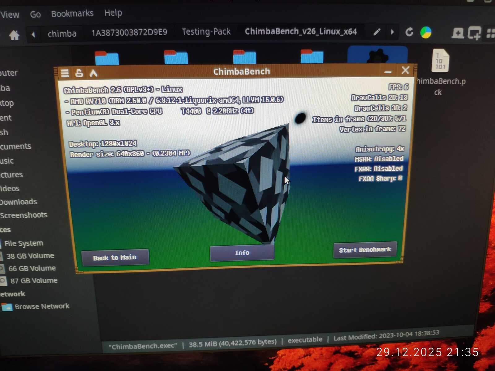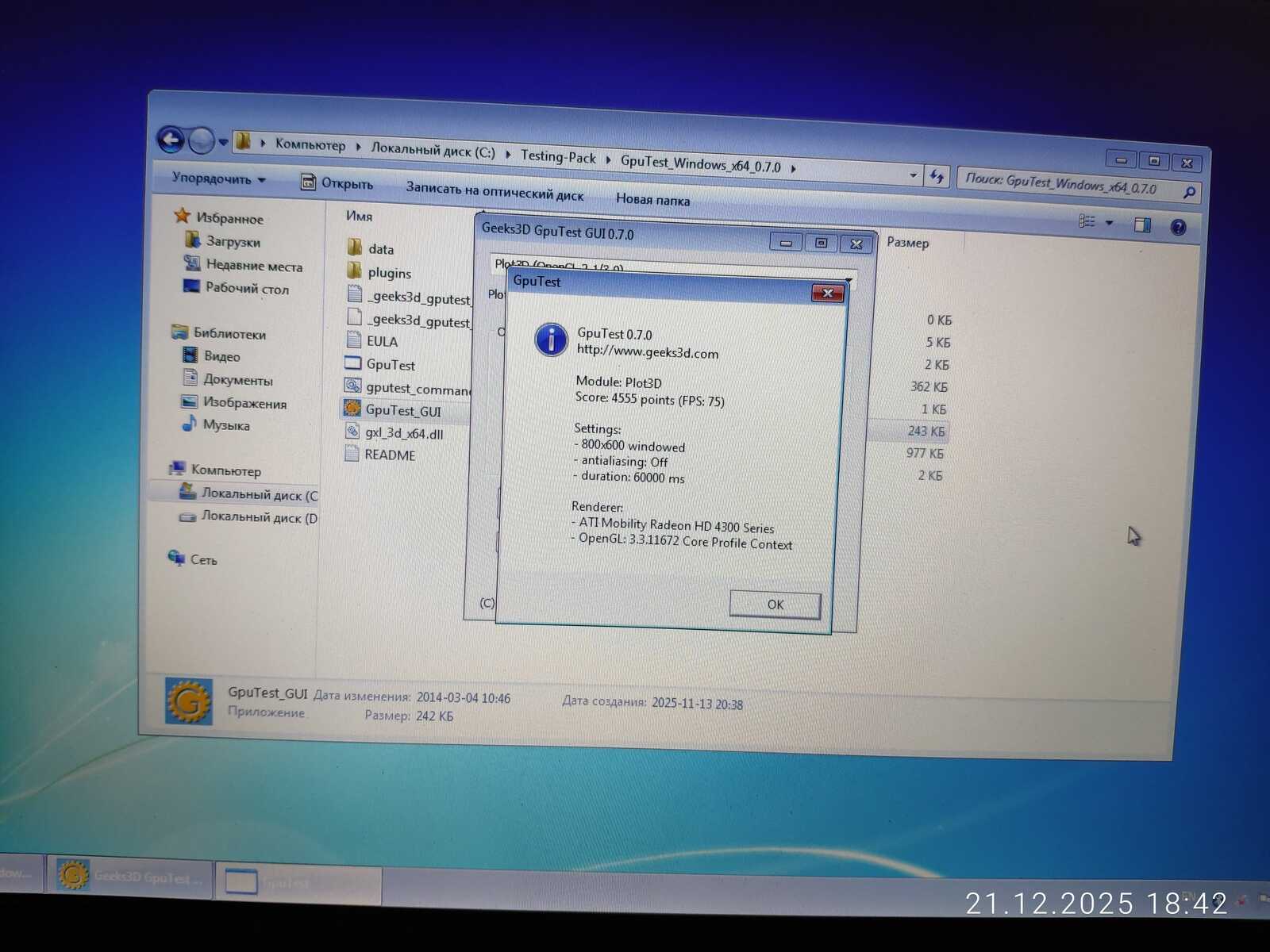 С тестом GiMark драйвер видеокарты AMD не справился в Линуксе. Увы.