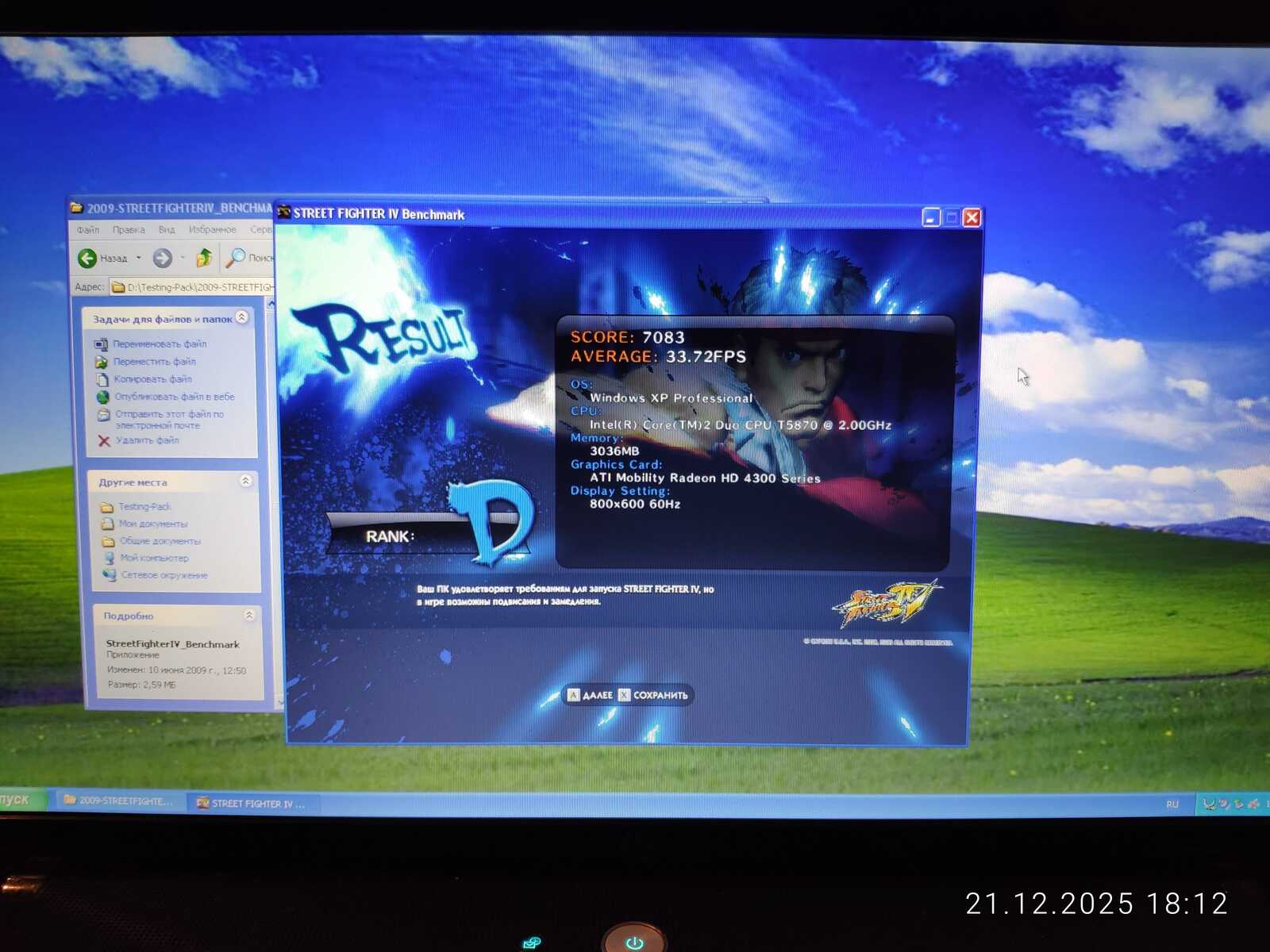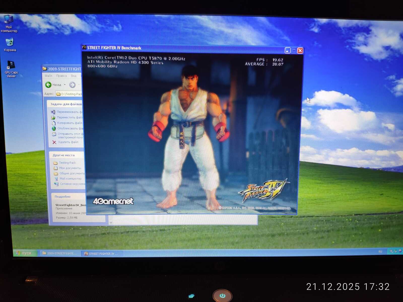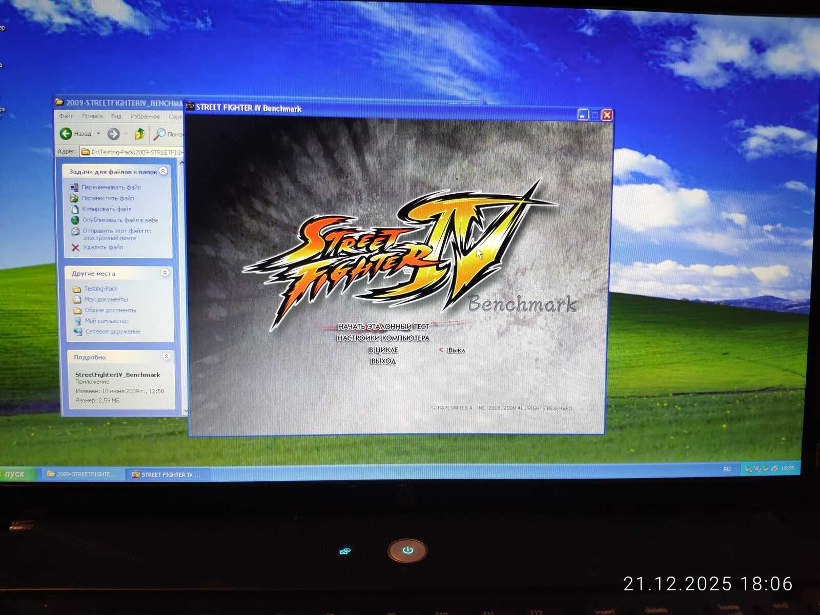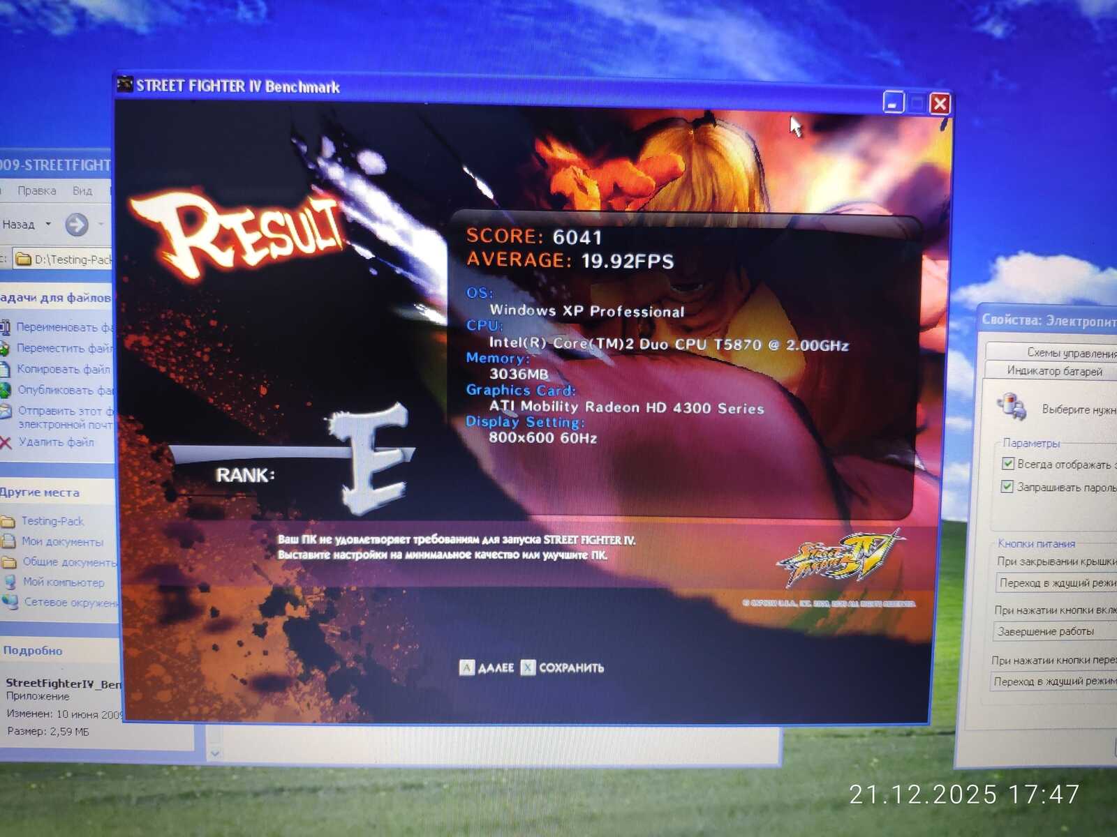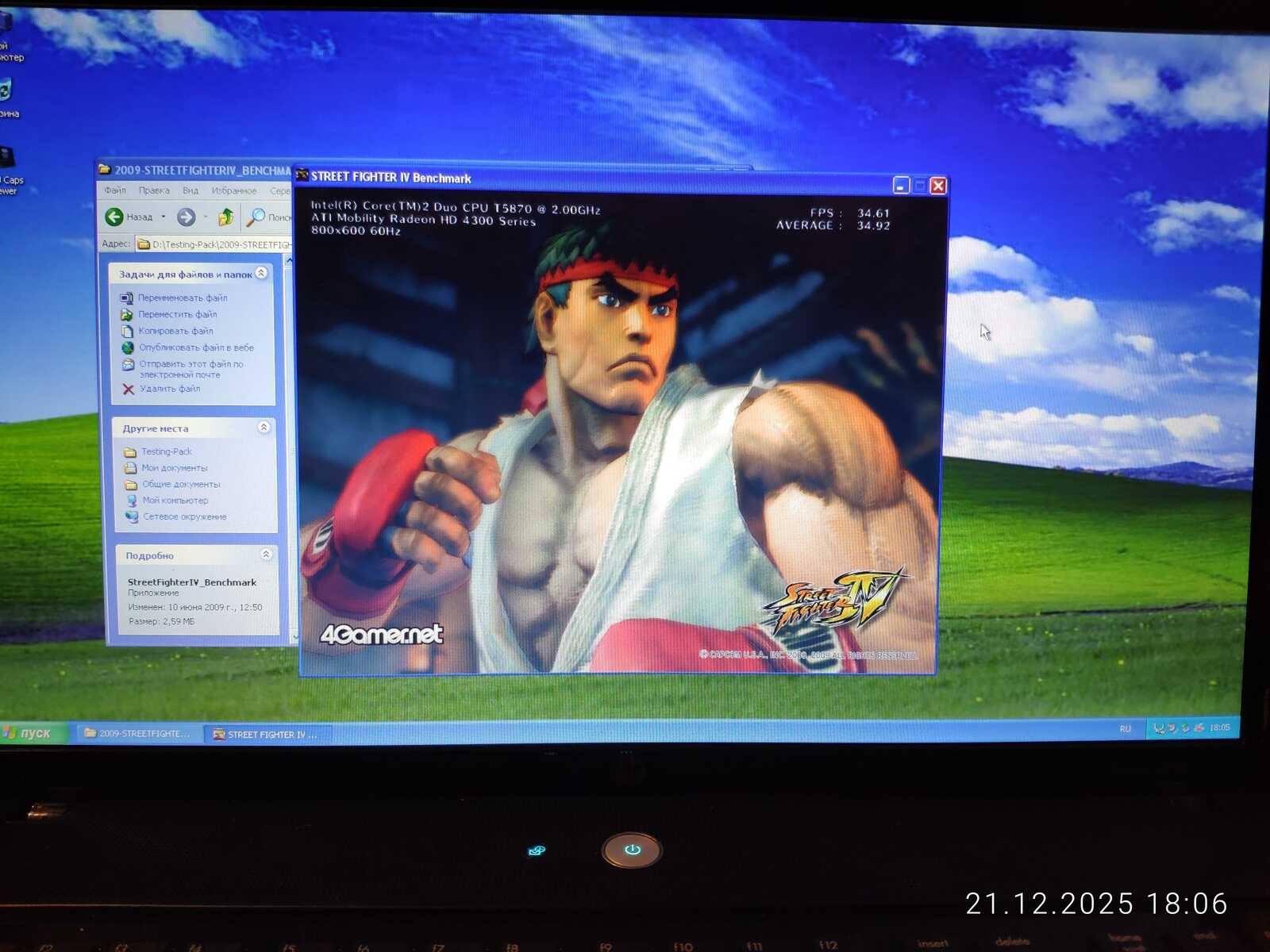 Первый тест Street Fighter IV не удался по причине отключившегося штекера зарядного устройства. Если процессору всё равно на режим работы, то видеокарте нет. HD 4330 не выдаёт свою полную производительность при работе от батареи.